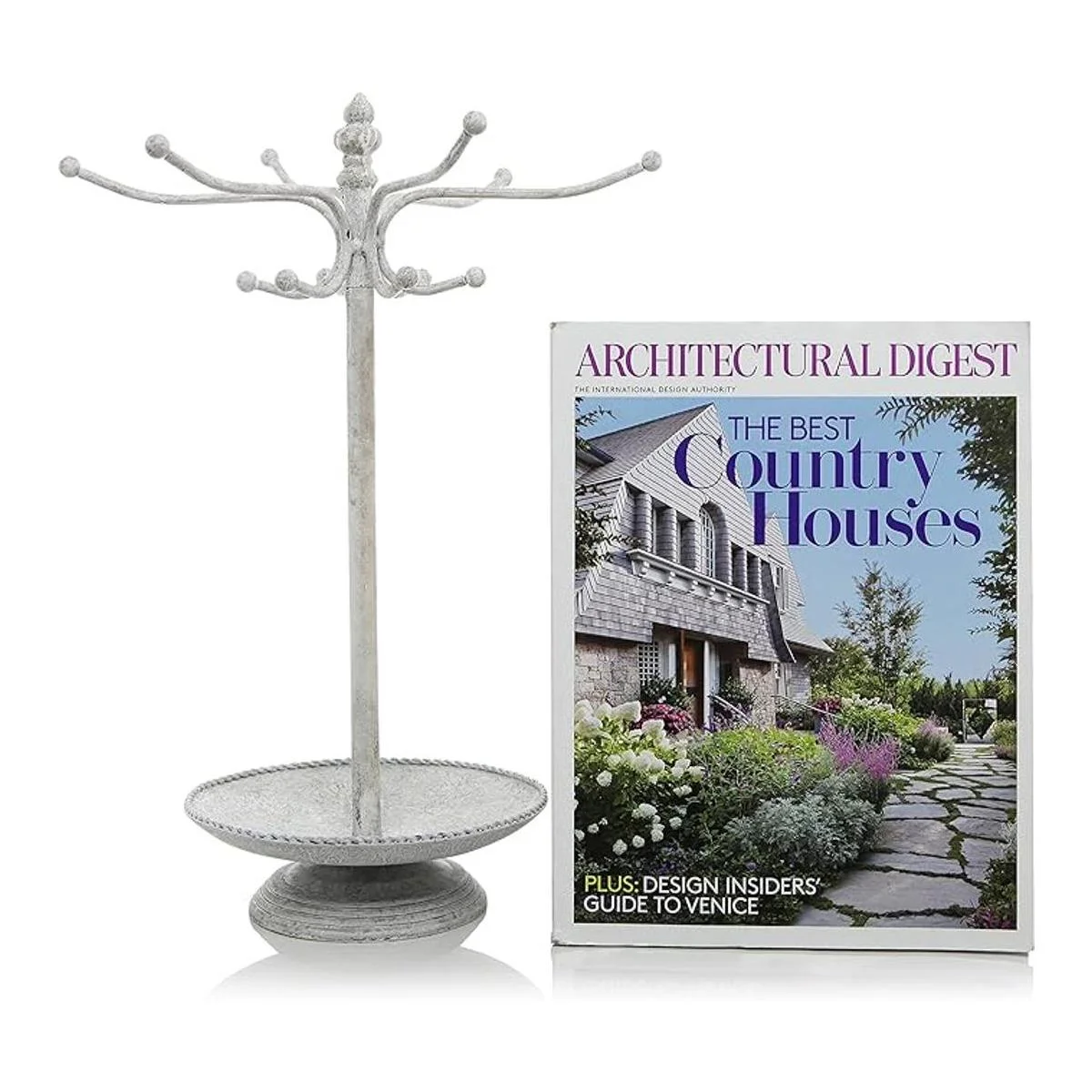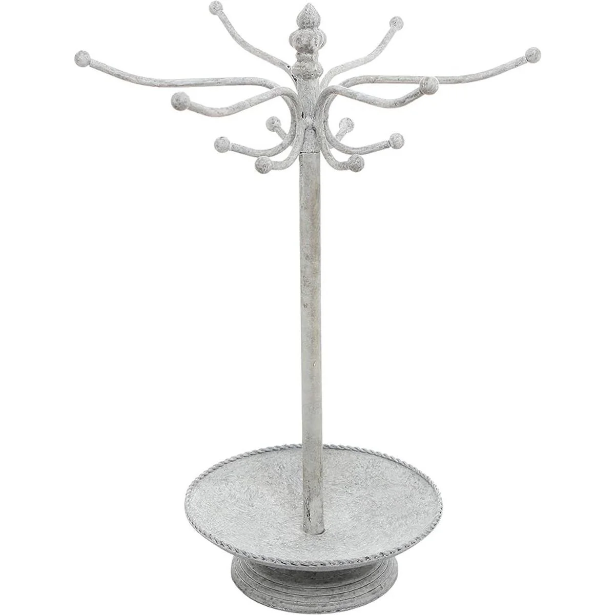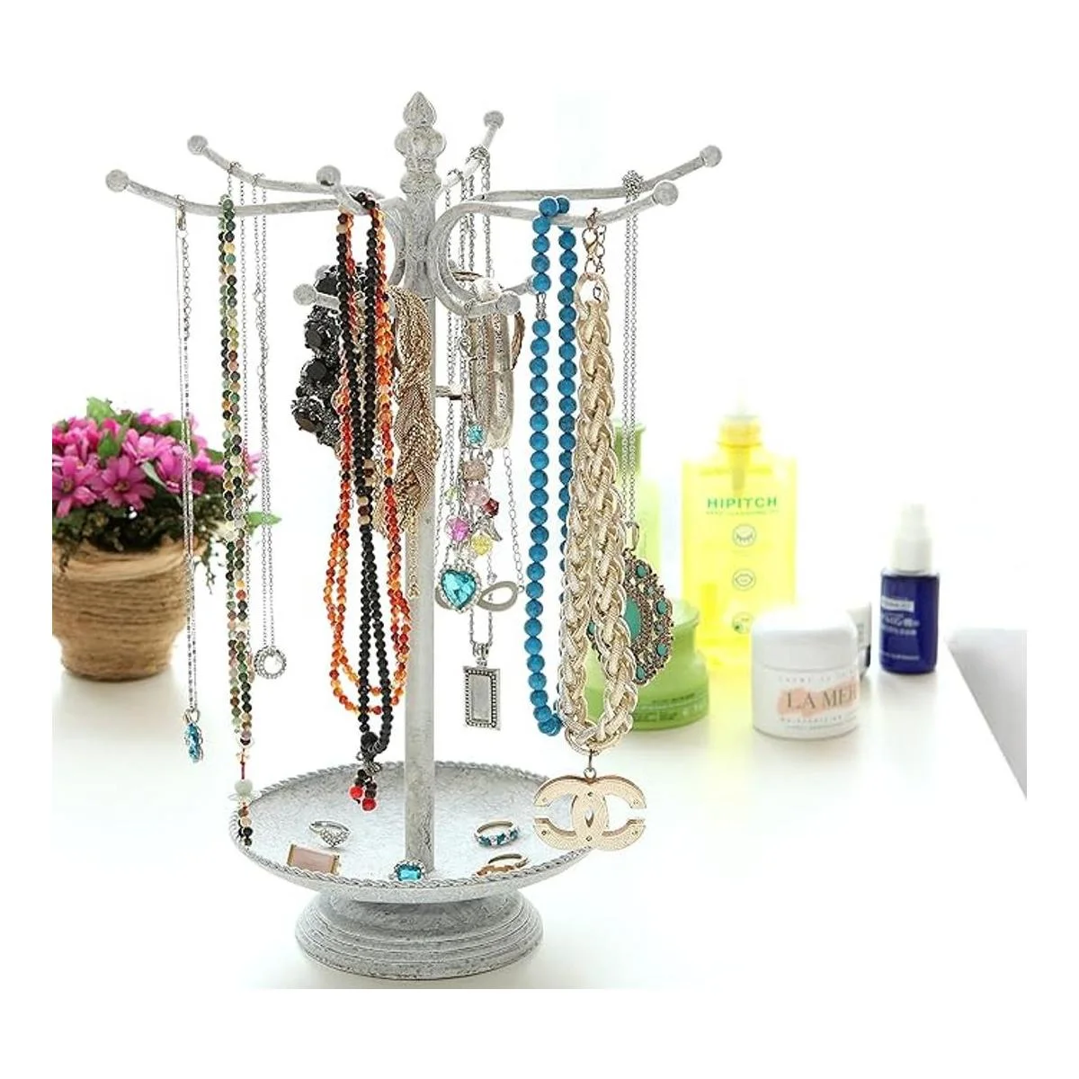 Estilo vintage organizador de joyas de 12 ganchos de metal, soporte tipo árbol con bandeja para anillos de MyGift