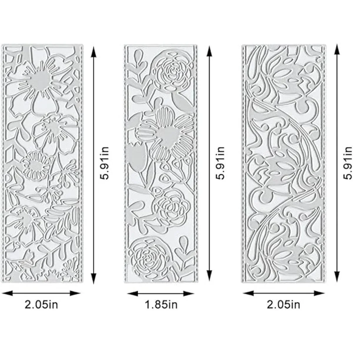 Estivaux 3 troqueles de corte de marco de hojas de flores para hacer tarjetas, marco rectangular, troquelados, marcapáginas, vides, flores, troqueles de metal, plantilla de grabado para álbumes de recortes, tarjetas, álbum, suministros de manualidades