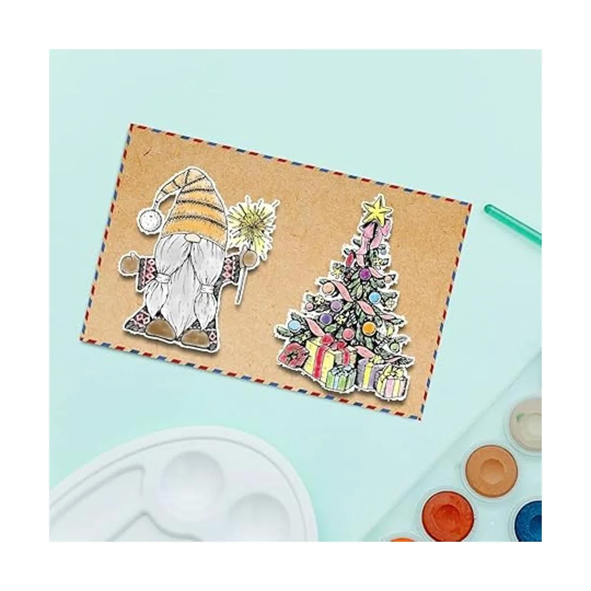 Estivaux rboles de Navidad, gnomos, sellos transparentes y troqueles para hacer tarjetas, sellos de goma de cascabel de Navidad, gnomos de Navidad, juegos de troqueles de corte para álbumes de recortes, diario, suministros de manualidades
