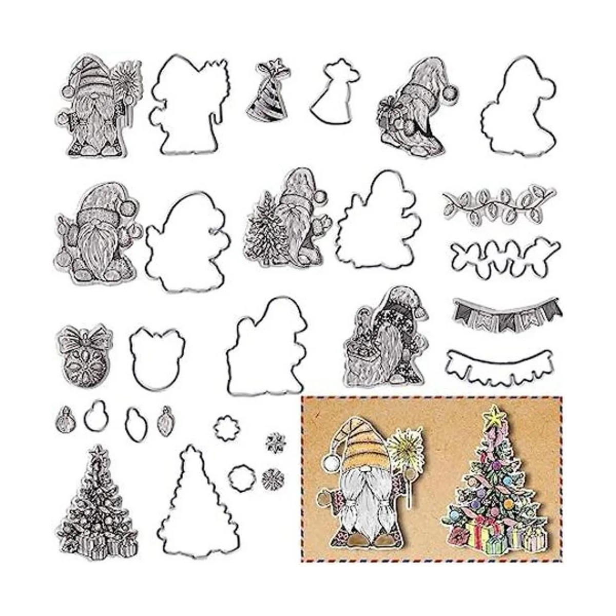 Paquete: recibirás 1 juego de sellos y troqueles de gnomos de Papá Noel para árbol de Navidad. Ven y muestra tu artesanía.