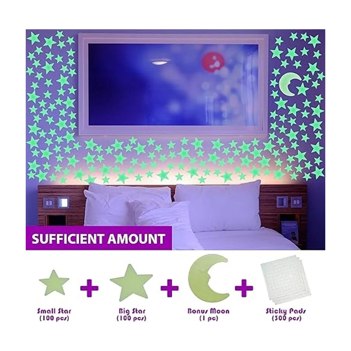 Estrellas fluorescentes ultra brillantes en la oscuridad, calidad premium diferentes tamaños estrellas fluorescentes con bonificación luna grande 201 piezas pegatinas decoración de techo regalo perfecto para niños dormitorio fiesta de cumpleaños