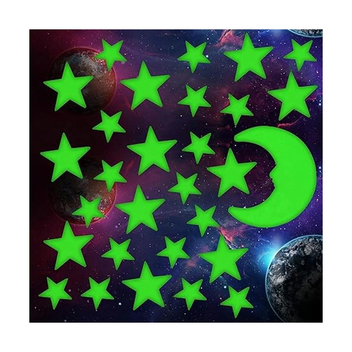 Diferentes tamaños: con el fin de sentirse como estar bajo la noche estrellada, todo lo que necesitas está incluido en este producto. Dos tamaños de estrellas 1.2 in y 1.5 in con la luna súper grande de 3.1 in hará que tu habitación sea más romántica y animada. Con las 201 piezas de conteo podrás crear combinaciones impresionantes y son lo suficientemente grandes para cubrir todas las paredes