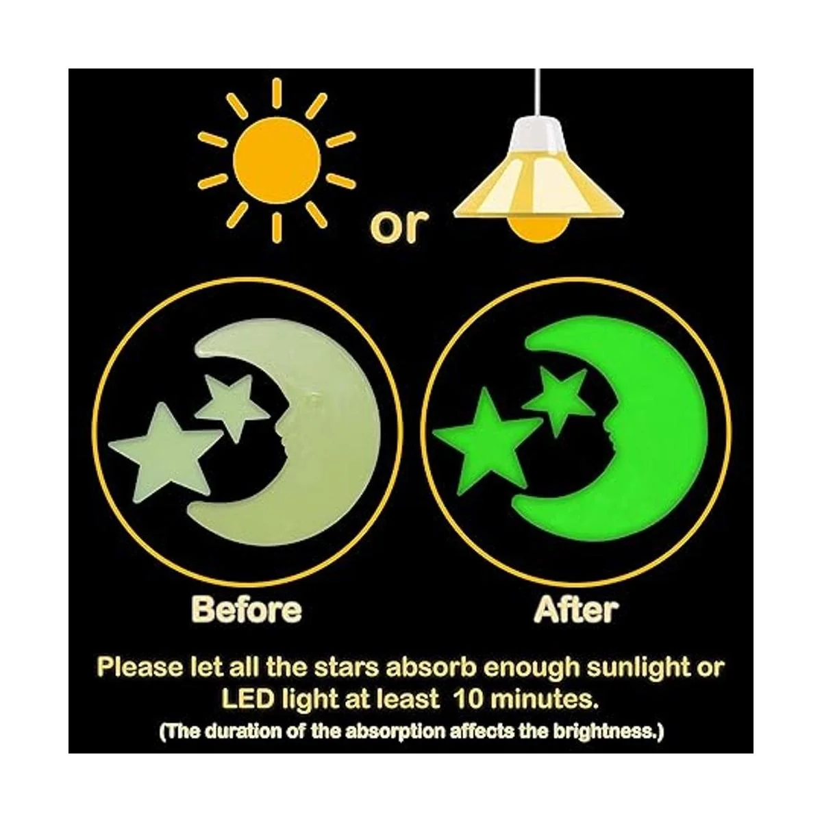 Calidad premium y brillo ultra duradero: el momento en que cierras la luz, verás esas estrellas y luna ultra brillantes colgadas en el techo, se siente como acampar en la naturaleza. Solo asegúrate de que absorbe suficiente luz solar o luz artificial, brillará toda la noche
