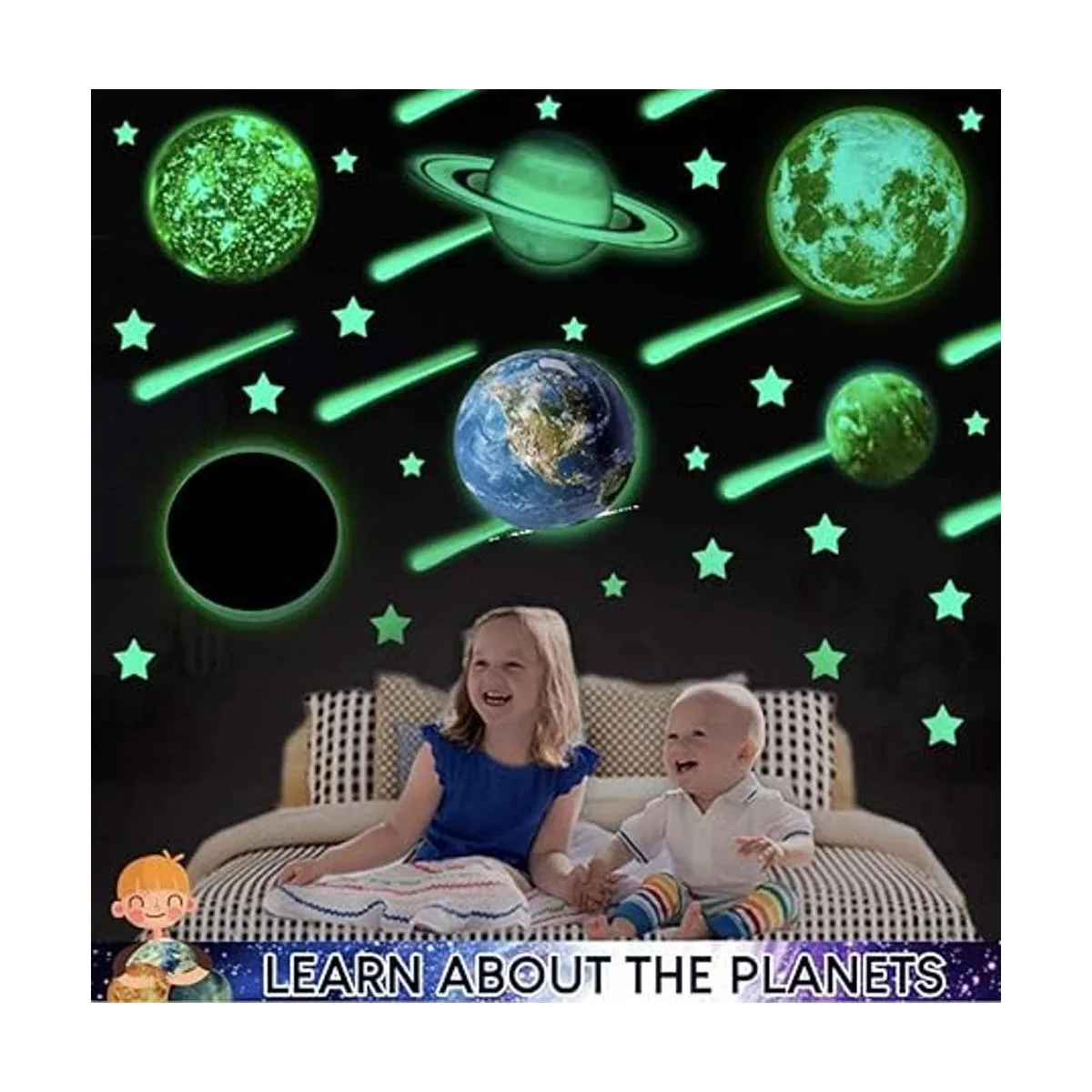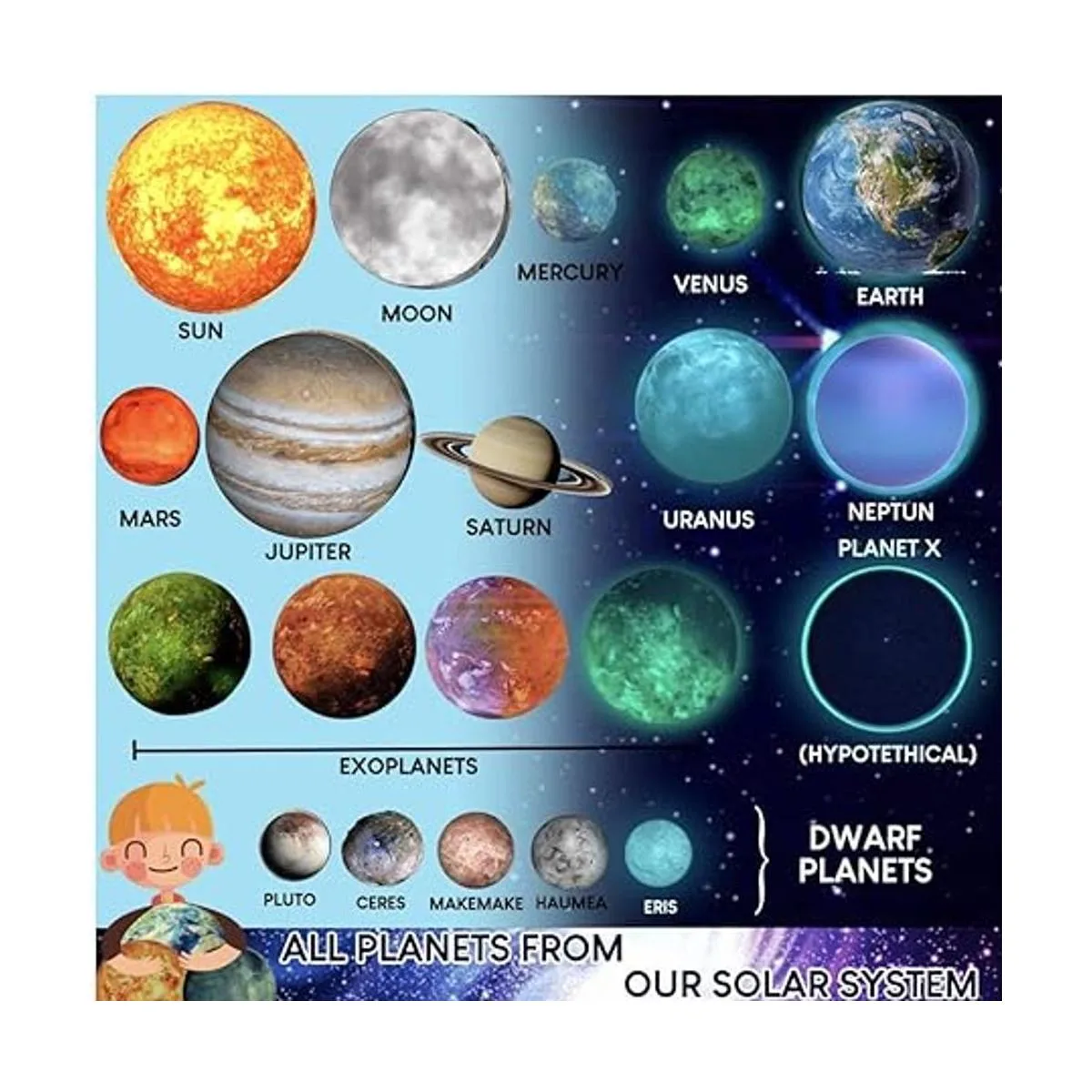 Sistema solar para decoración de habitación de niños Crea un panorama de ensueño: planetas que brillan en la oscuridad para techo y estrellas, absorben la fuerte luz solar durante el día y brillarán en la oscuridad. Planet ultra luces si absorben la luz directa de la linterna, la lámpara durante más de 5 minutos. Universo de galaxia que brilla en la oscuridad para dormitorio