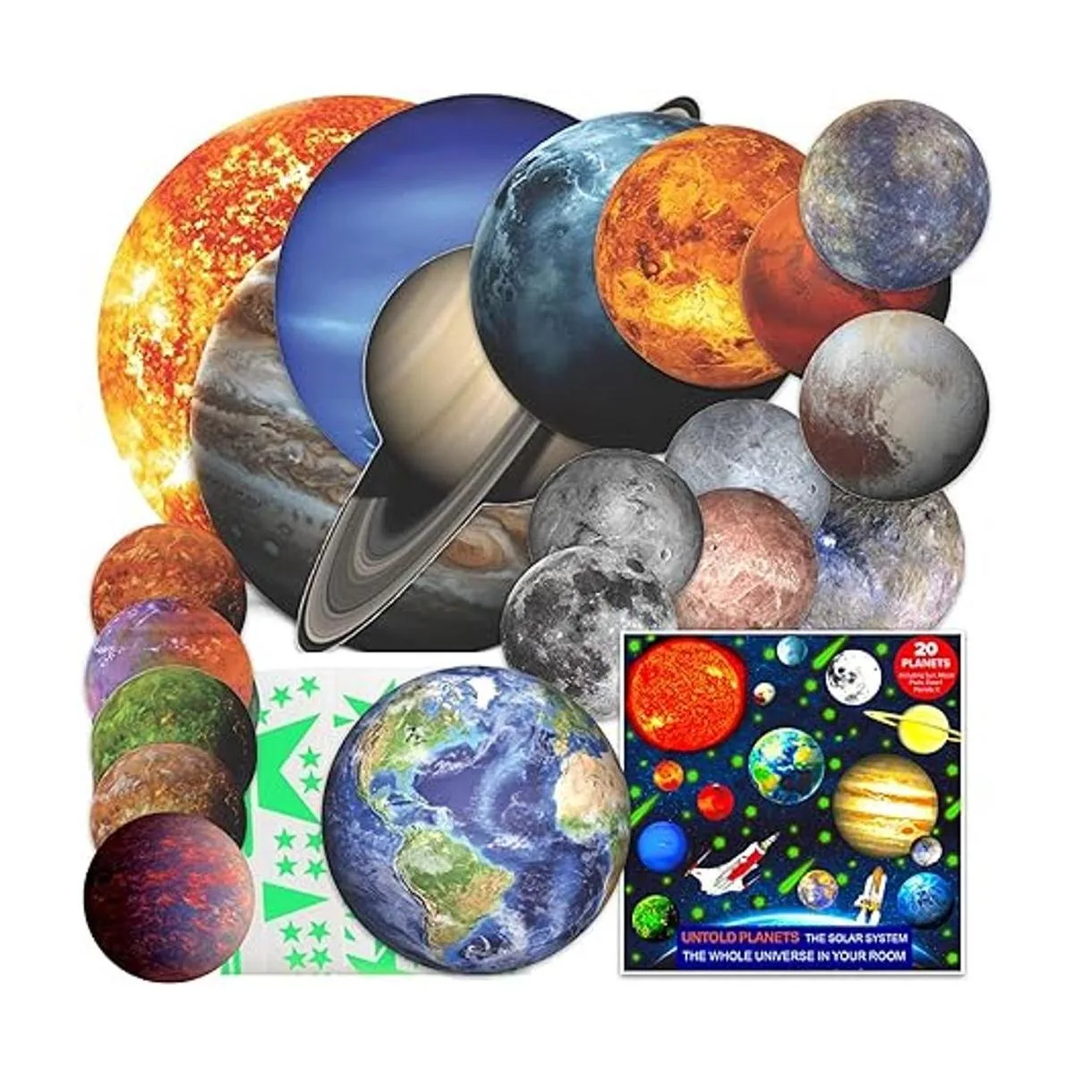 Estrellas y planetas que brillan en la oscuridad para techo, calcomanías de pared realistas 3D para niños, decoración de habitación espacial, planetas enanos, Plutón, luna sol estrellas que brillan en la oscuridad, calcomanías de la NASA que brillan en la oscuridad
