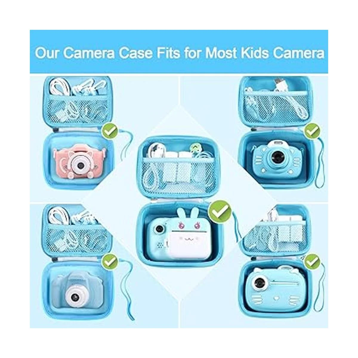 Estuche para cámara infantil compatible con cámara infantil MINIBEAR, funda para cámara para niños y niños, accesorios de cámara de acción, 5.5 x 4.3 x 2.6 pulgadas, caja de almacenamiento a prueba de golpes para la mayoría de las cámaras de niños azul
