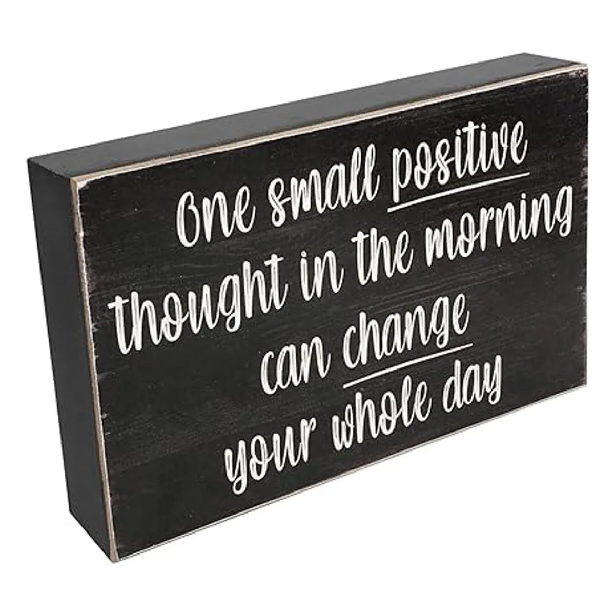 Esur Positive Thought Escritorio de oficina en casa, decoración de caja de madera, estante inspirador para decoración de pared, accesorios para mujer, color negro