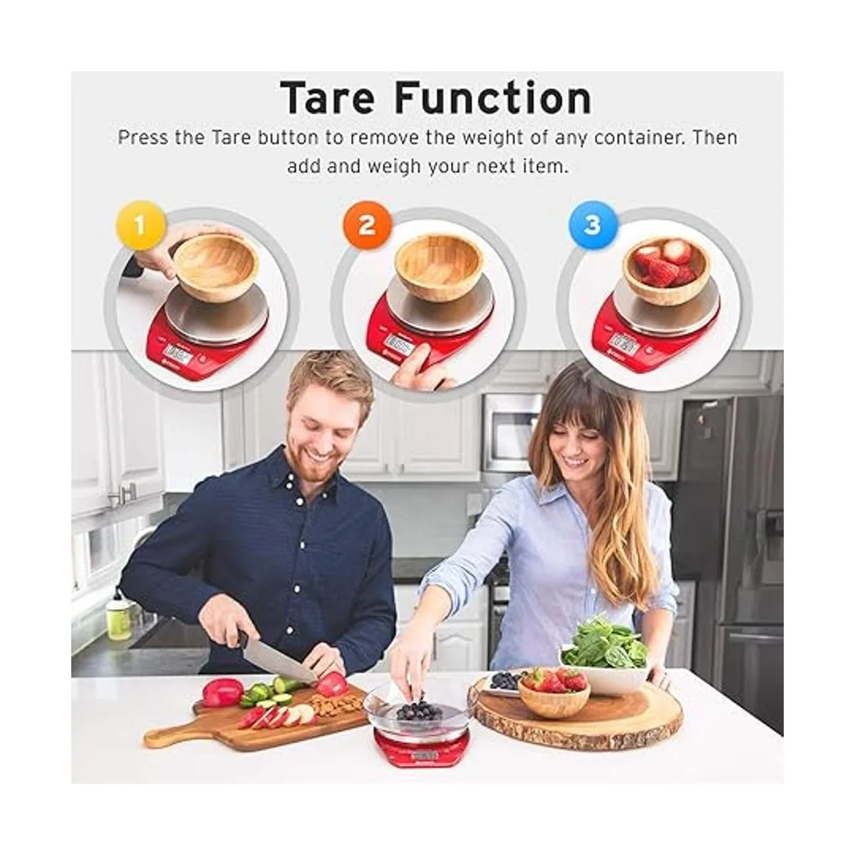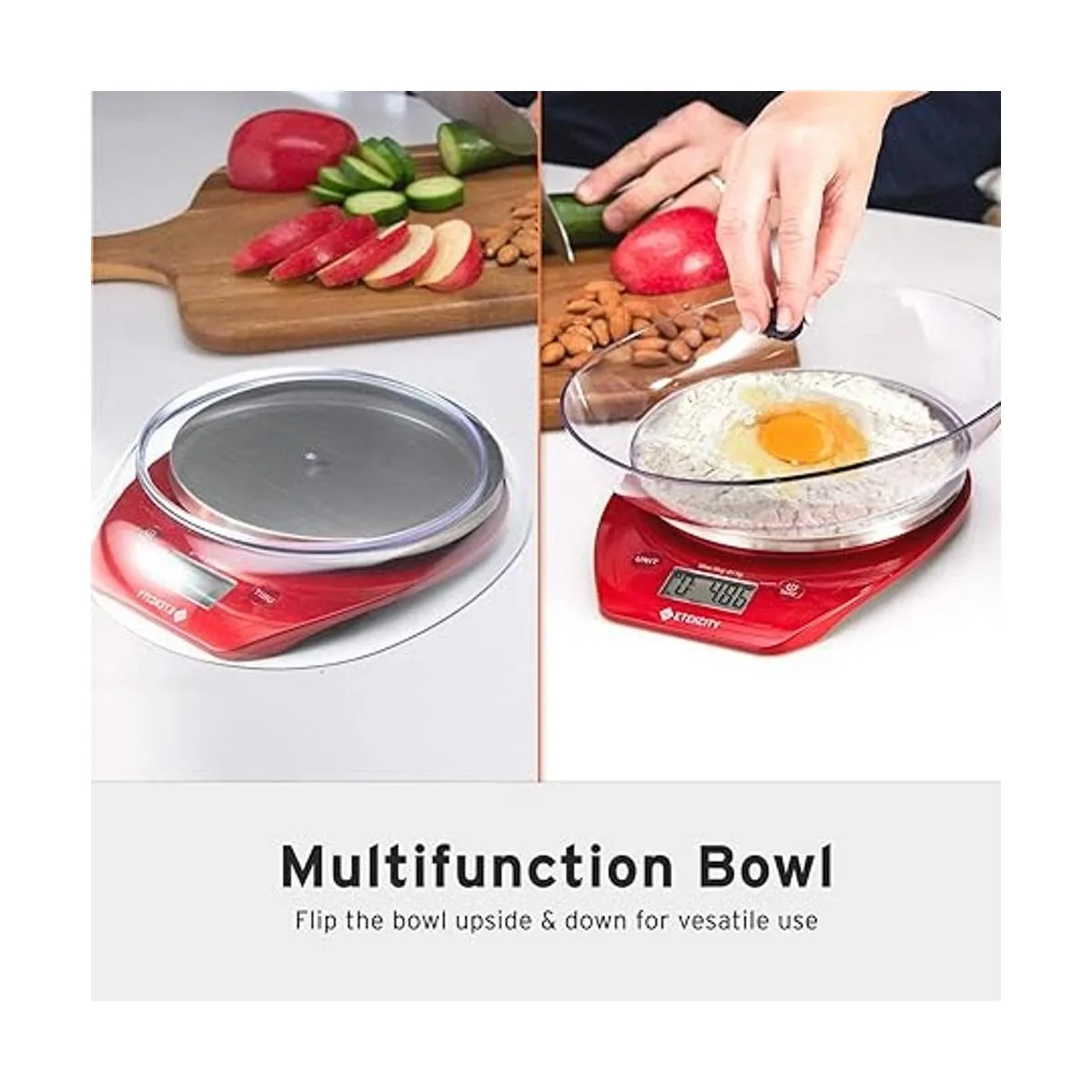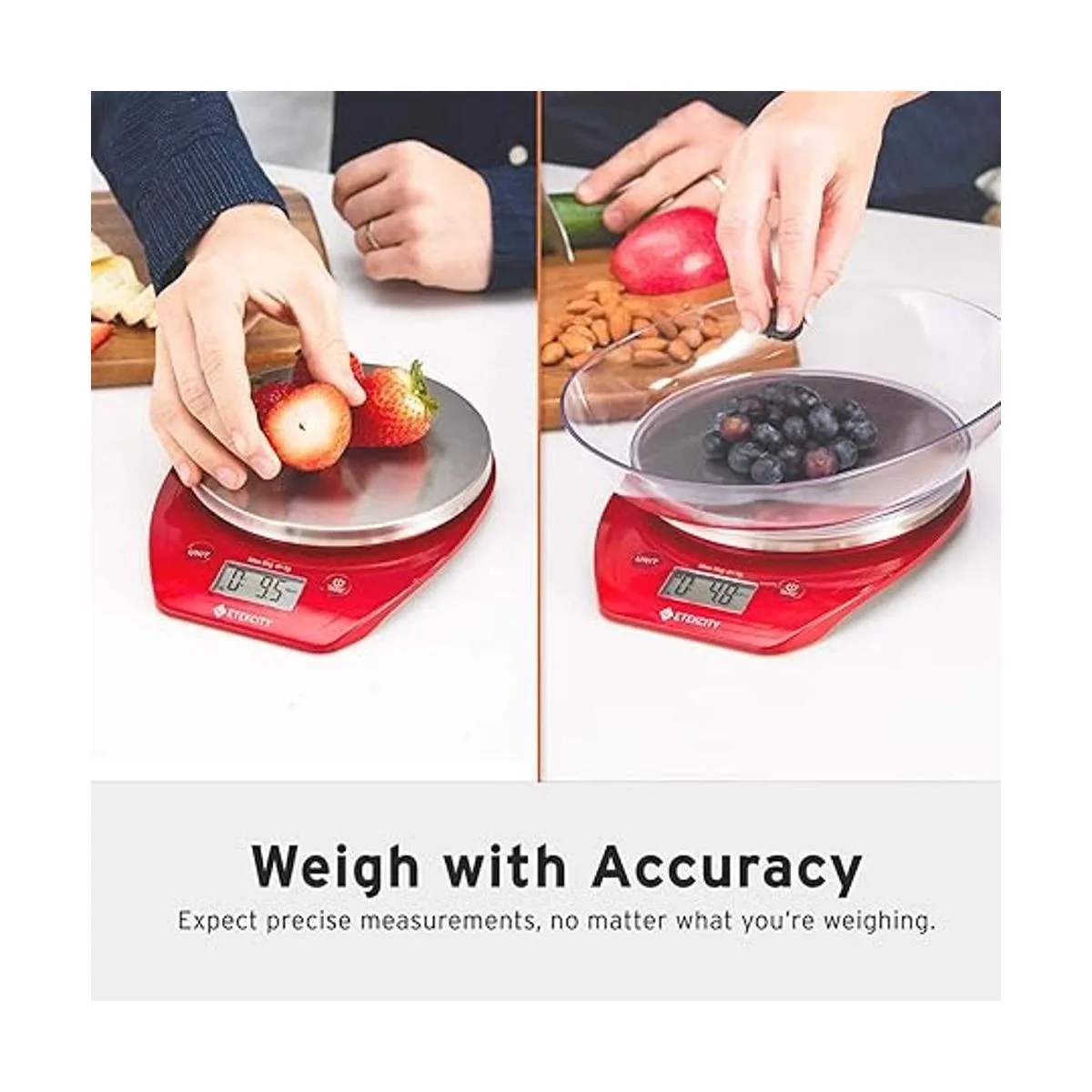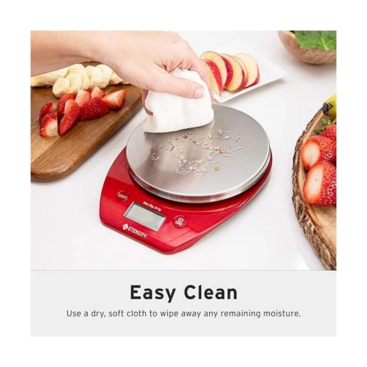 Etekcity Báscula de cocina para alimentos, peso digital gramos, onzas y onzas para cocinar, hornear, preparar comidas y dieta, 11 lb5 kg, color rojo