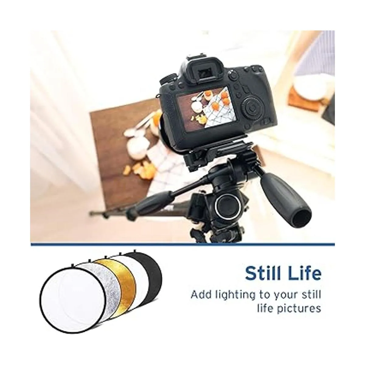 Etekcity Reflector de luz 5 en 1 de 24 pulgadas 23.6 in para fotografía, reflector de fotos multidisco, plegable con bolsa, translúcido, plateado, dorado, blanco y negro