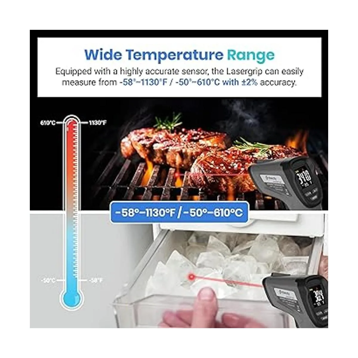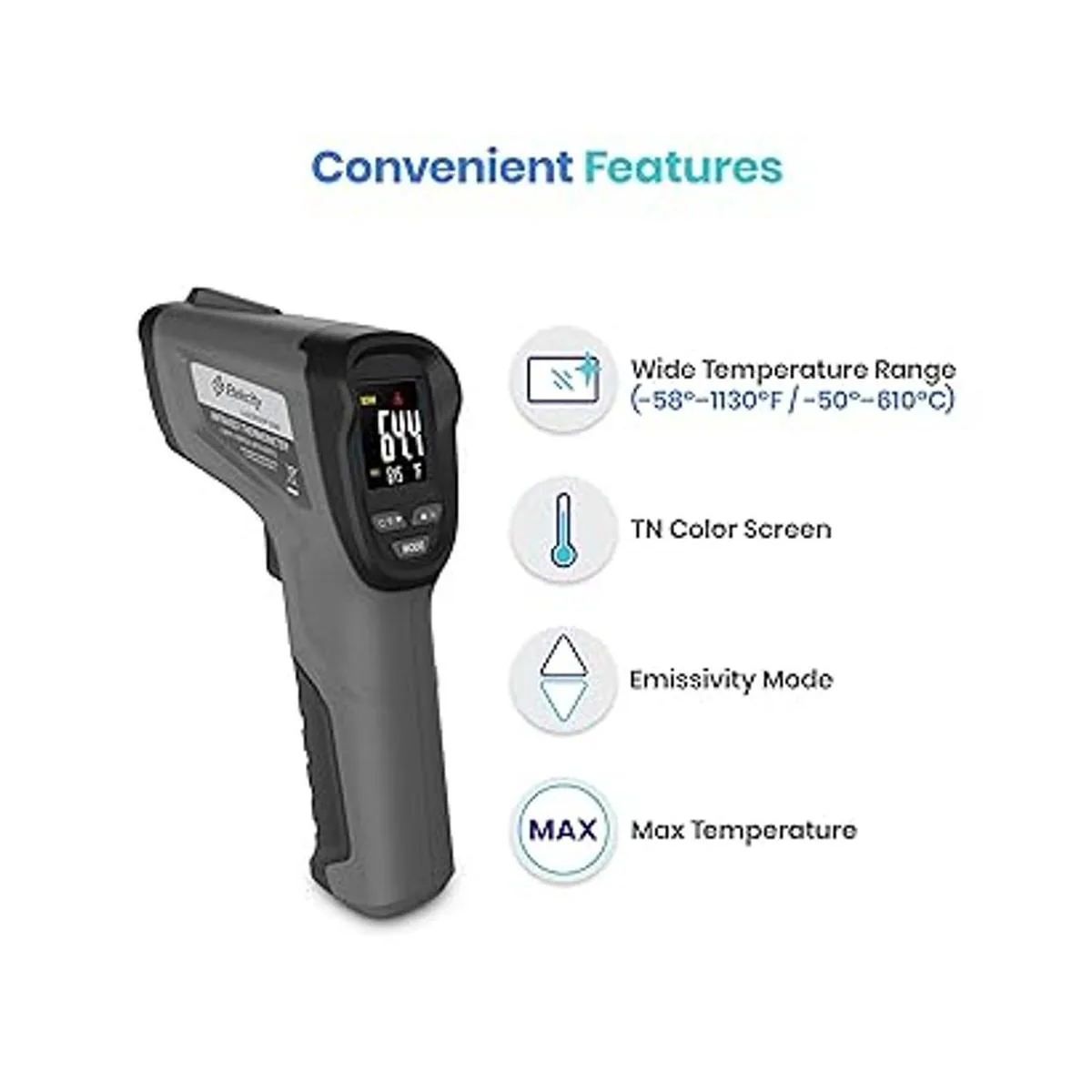 Etekcity Termómetro infrarrojo 1260, de temperatura de calor para cocinar, herramienta de superficie IR láser para horno de pizza, carne, plancha, parrilla, HVAC, motor, accesorios, 58F a 1130F, negro