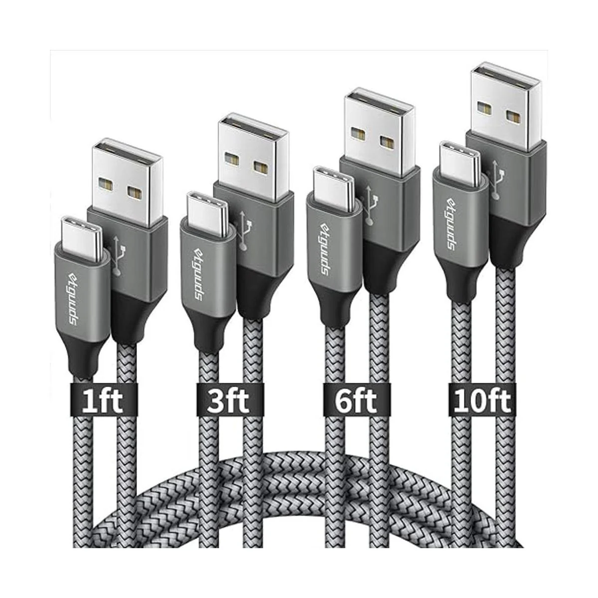 etguuds Cable USB C de carga rápida 4 unidades, 13610 pies, cable de carga trenzado de nailon tipo C compatible con Samsung Galaxy S10 S9 S8 Plus S10E Note 20 10 9 8, A10e A20 A30 A50 A70 A51 A71, LG G7 G8