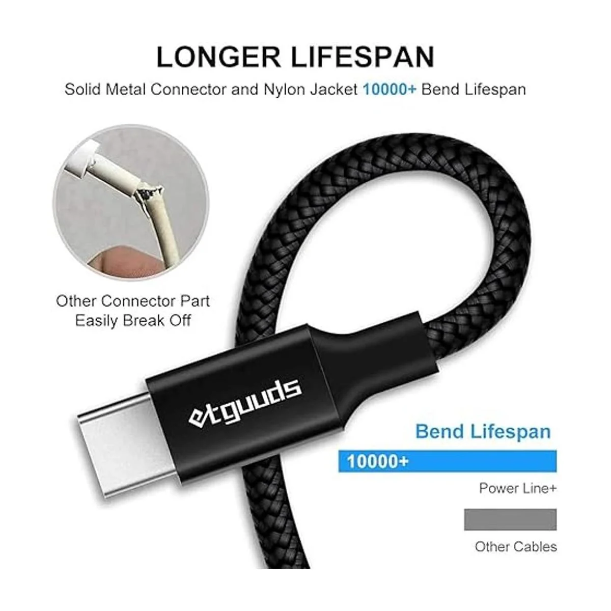 15 pies extra largo y conveniente Con cable USBA a USBC de etguuds de 15 pies de largo, es una comodidad gigante Puedes cargar y utilizar tu teléfono/portátil/controlador de juego a una distancia libremente, no importa en casa u oficina, coche o al aire libre, no tienes que esperar a que se carga, simplemente disfruta de tu vida