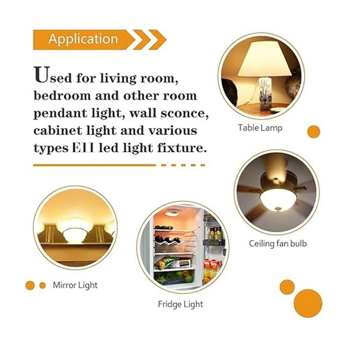 Fácil instalación: bombillas LED E11 con base de rosca de tornillo, se instalan fácilmente en varios accesorios de iluminación de base E11