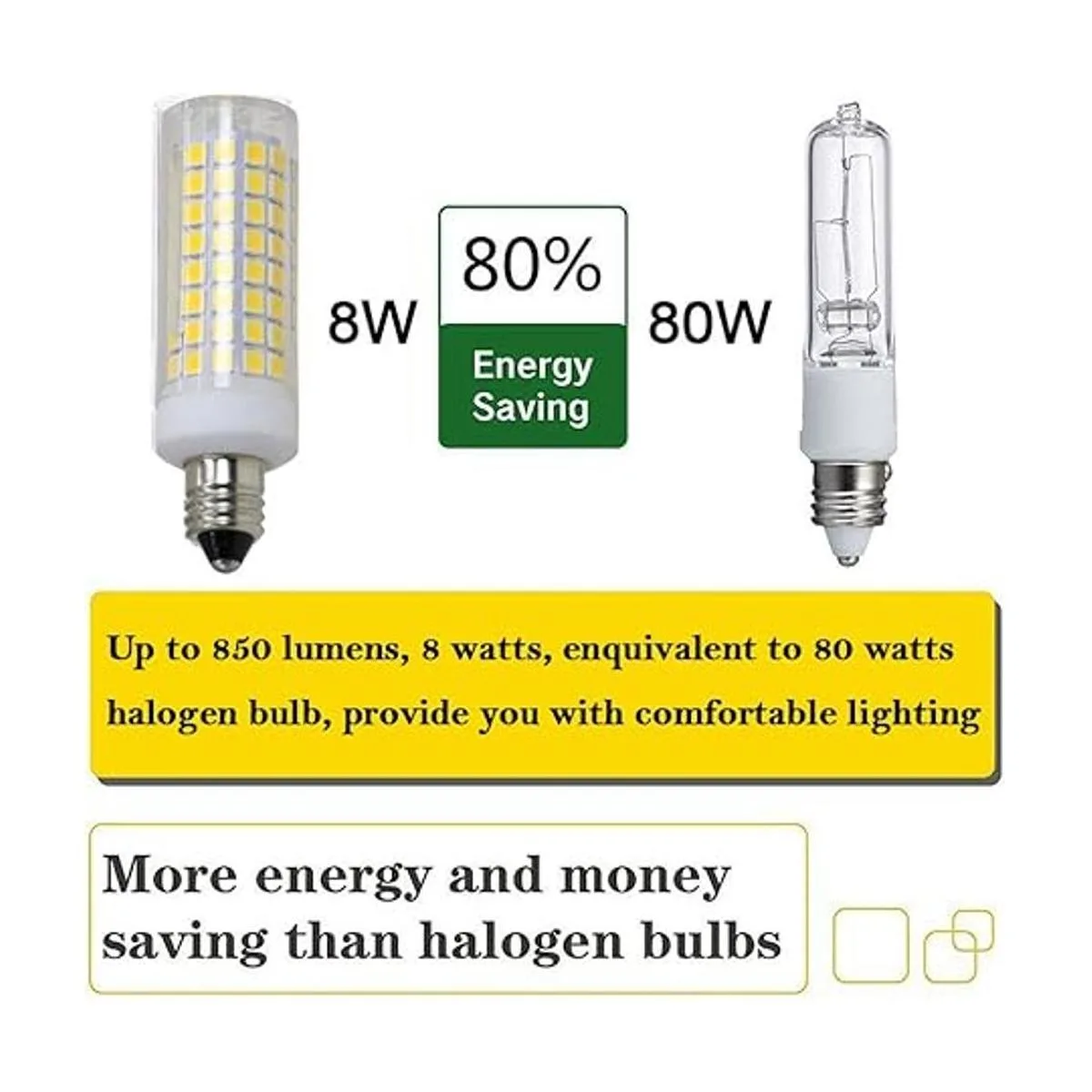 Conservación de energía: el LED e11 de 8 W es igual a 75 W a bombillas E11 tradicionales de 100 W. ndice de reproducción cromática CRI superior a 80, blanco cálido 3000 K.