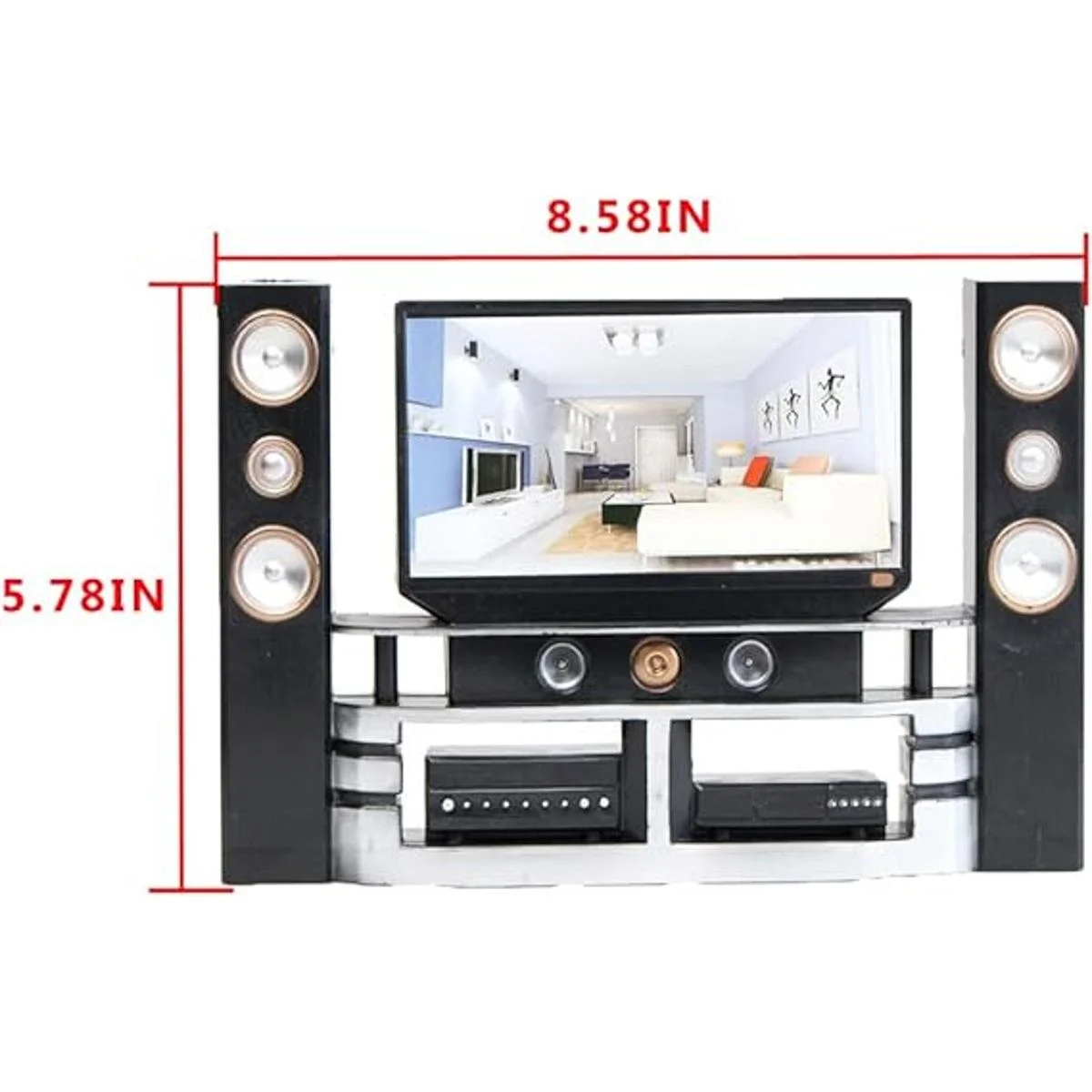 El televisor de TV de casa de muñecas mide aproximadamente largo x ancho x alto: 8.58 x 0.78 x 5.78 pulgadas medición manual, puede haber una pequeña desviación