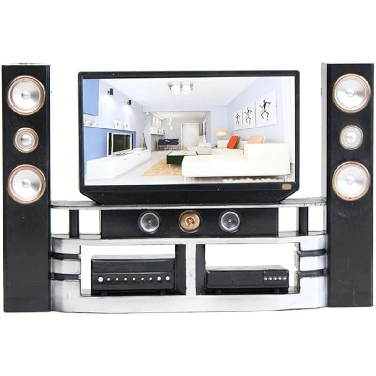 El paquete incluye: 1 mueble de TV de alta fidelidad, juego de accesorios para casa de muñecas, trae más diversión a la decoración de tu casa de muñecas. Puede haber diferencias en las imágenes adhesivas, consulta el recibo real
