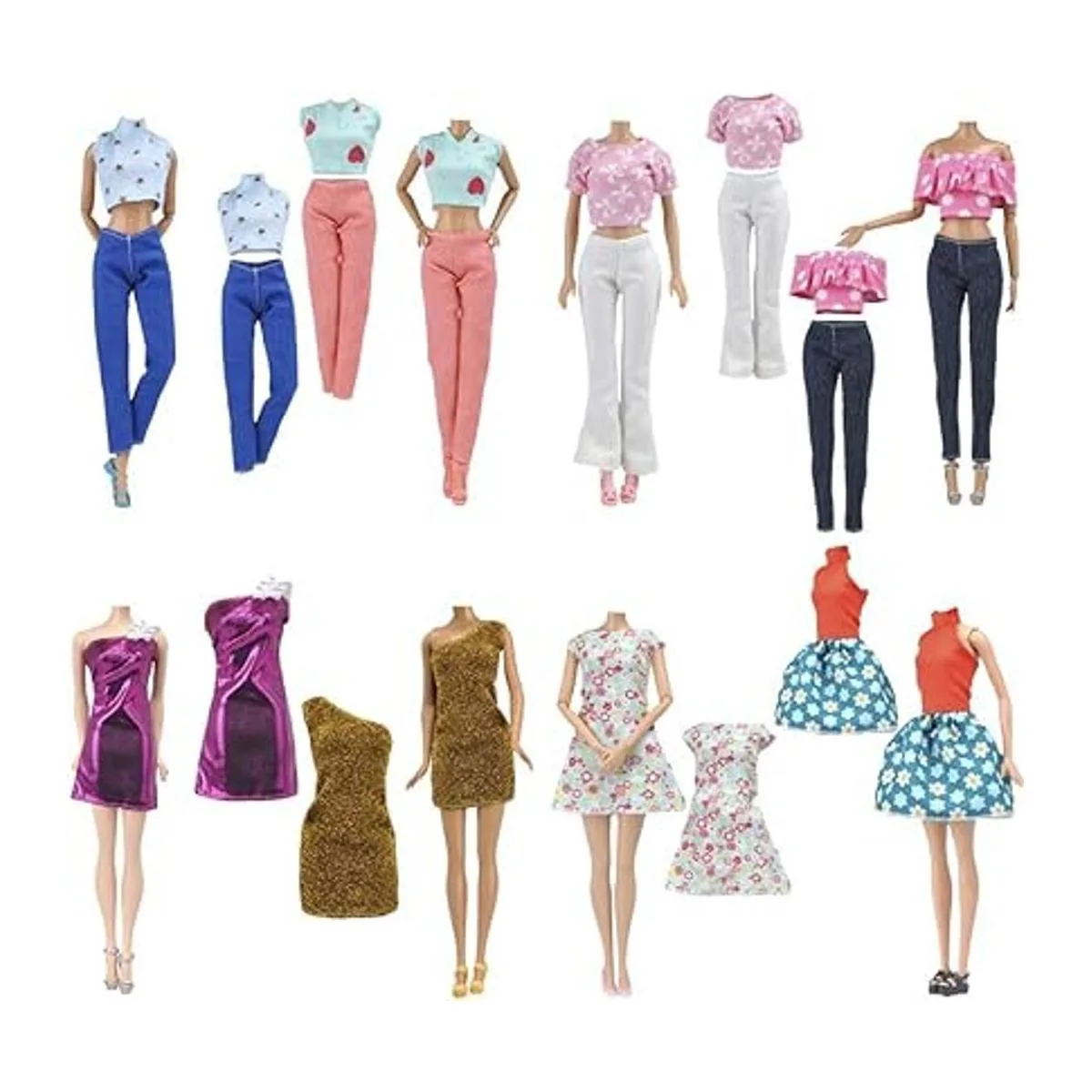 ETING Lote de 15 artículos 5 juegos de ropa casual de moda con 10 pares de zapatos para muñecas de niña estilo aleatorio ropa casual falda corta