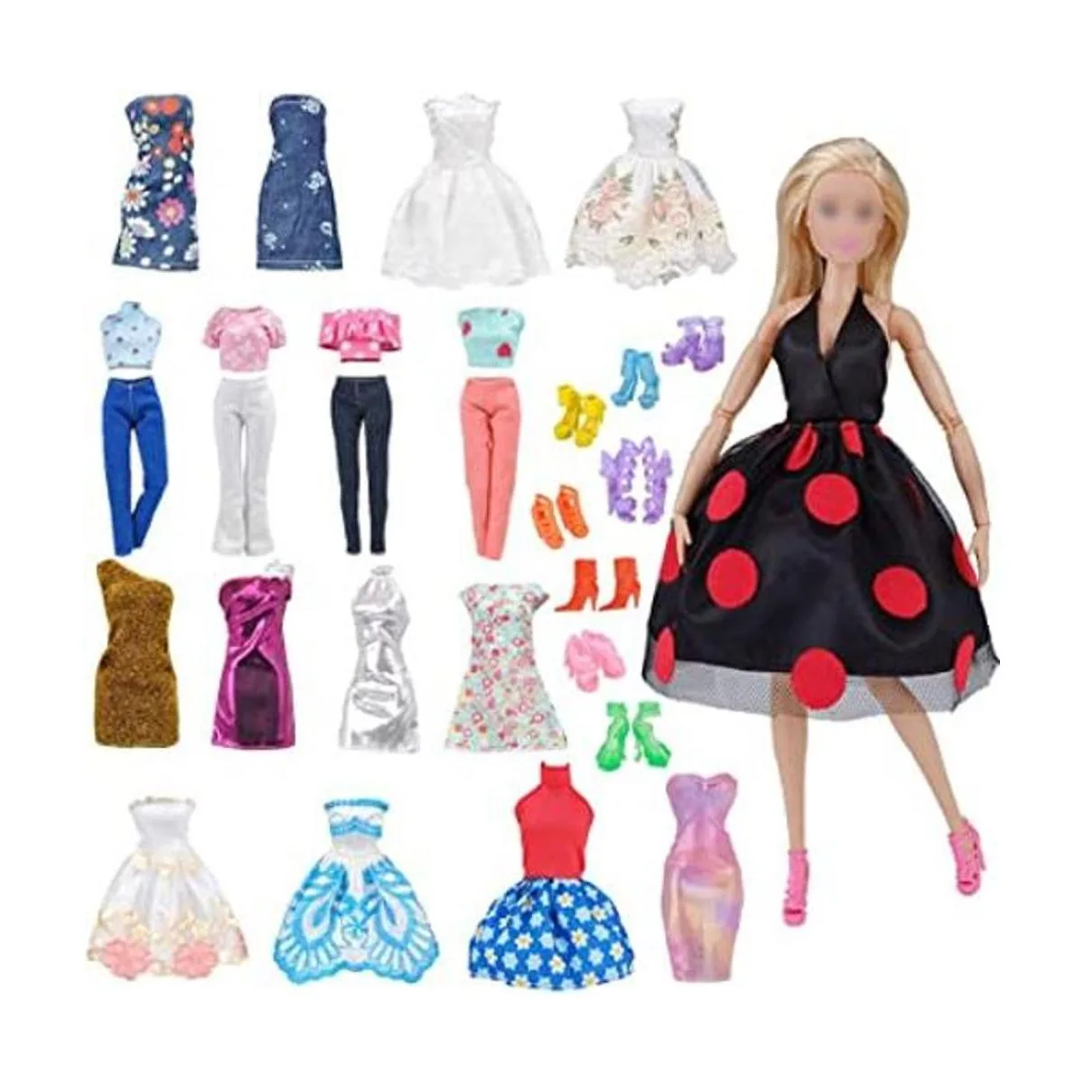Hermoso juego: cada juego incluye 5 trajes 10 pares de zapatos para muñecas de niña de 11.5 pulgadas estilo aleatorio, no incluye muñecas. Elegiremos ropa al azar de las imágenes, lo que significa que obtendrás diferentes estilos de ropa.