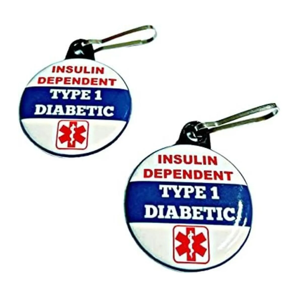 Etiqueta de alerta médica diabética tipo 1 dependiente de la insulina, 2 dijes de cremallera de 1.25 pulgadas para bolsa, mochila roja, azul, Rojo, azul, talla única