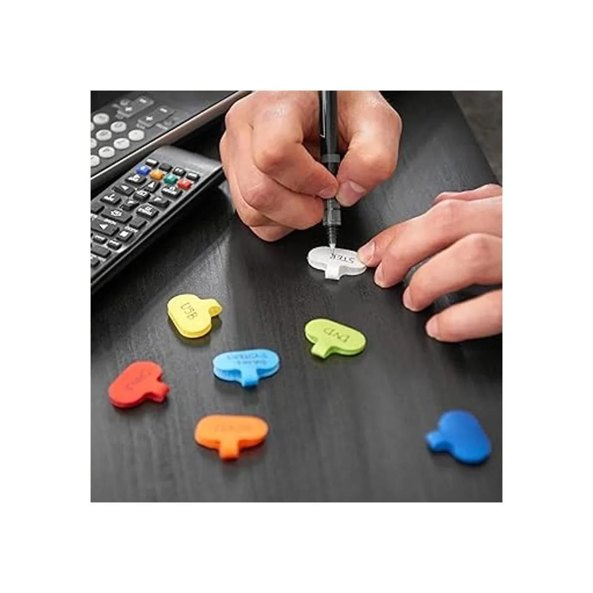Organízate: Cansado de desconectar el cable equivocado Lo estámos Evita la frustración con las etiquetas de cable. Etiqueta cables de computadora, regletas de alimentación, cables de carga, cualquier cosa, sin usar cintas desordenadas o lazos giratorios para cables.