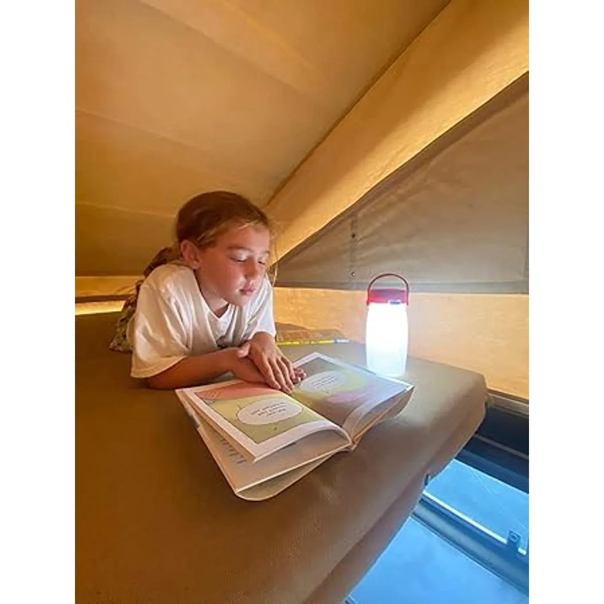 Múltiples características: la lámpara LED cuenta con un brillo normal que dura hasta 12 horas, un brillo más alto que dura hasta 8 horas y un modo de luz estroboscópica intermitente SOS; la botella de agua tiene capacidad para 22 onzas de agua; ideal para senderismo, navegación y fácil de usar para los niños.