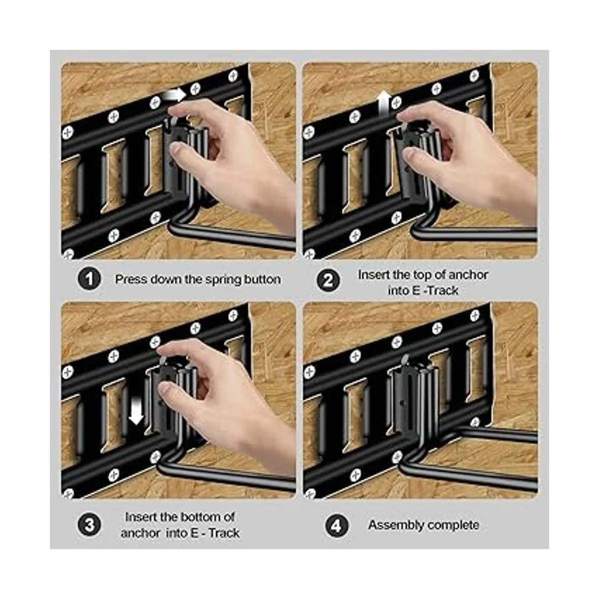 1. Características: estos ganchos de amarre de pista E tienen una fácil instalación de tres segundos: simplemente presiona las palancas en los accesorios de pista E e inserta en ranuras estándar de 2.5 x 1 pulgada en cualquier riel de amarre vertical u horizontal o individual.