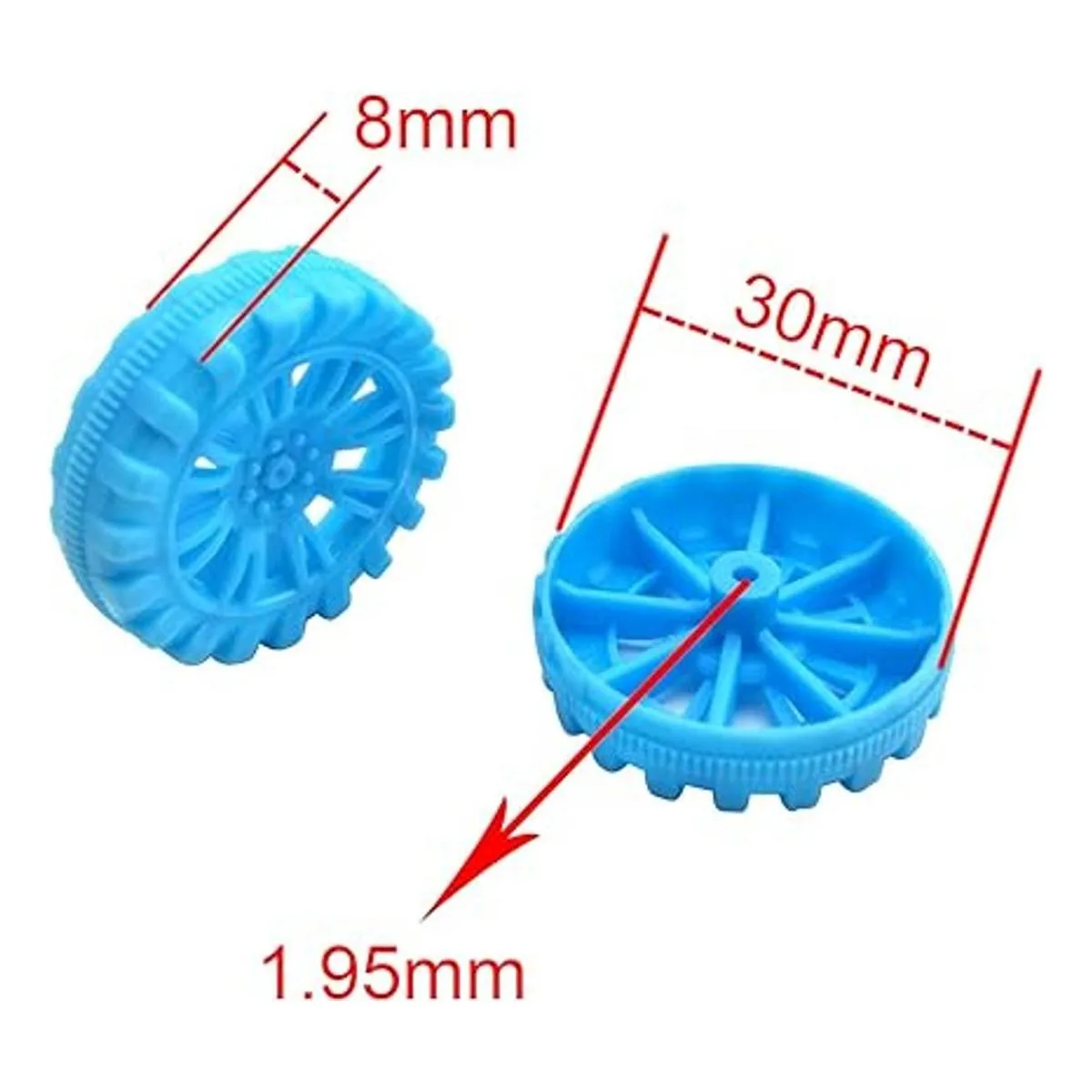 Tamaño de las ruedas de plástico: diámetro del eje: 0.077 in, apto para eje de 0.079 in. Diámetro: 1.181 in. Ancho del neumático: 0.315 in