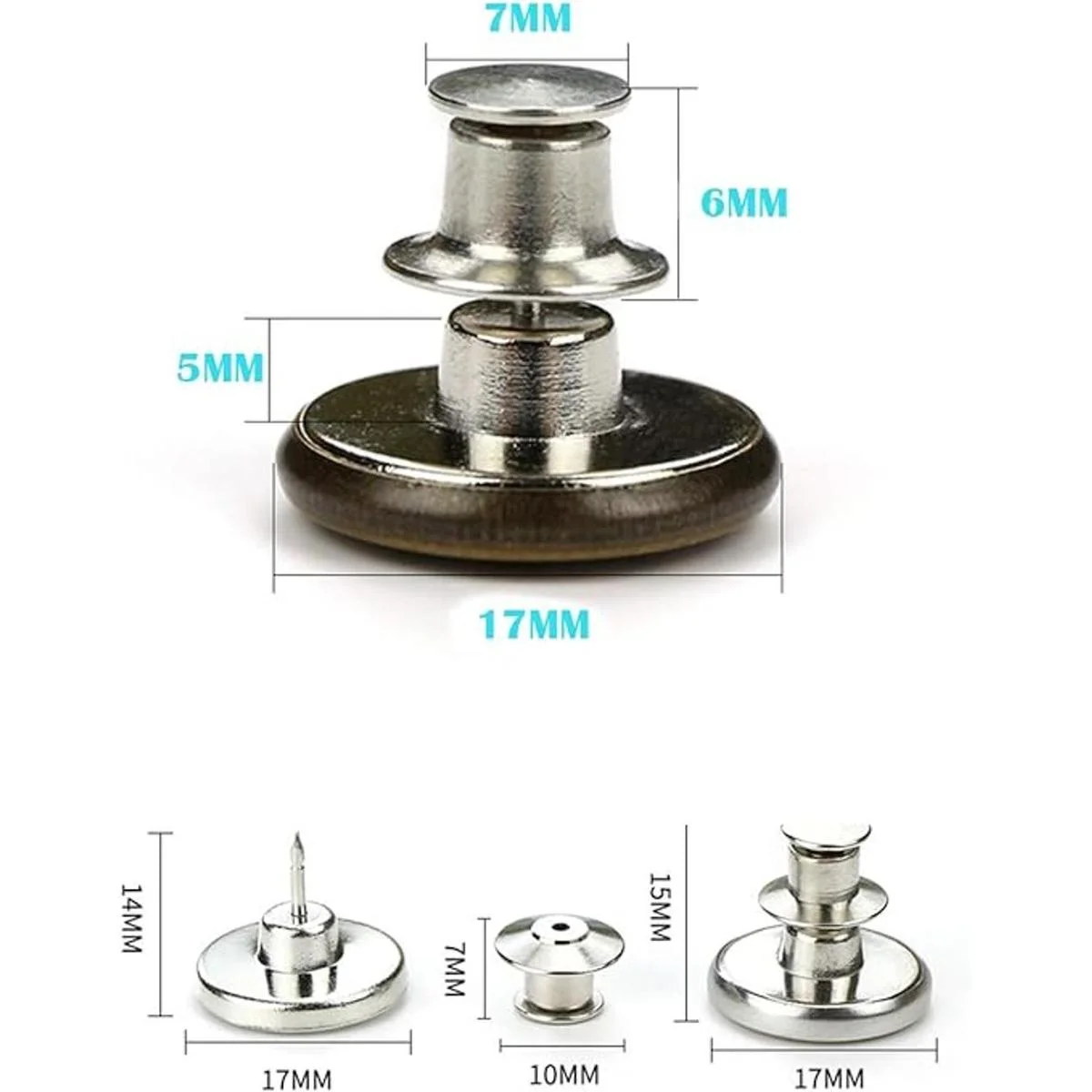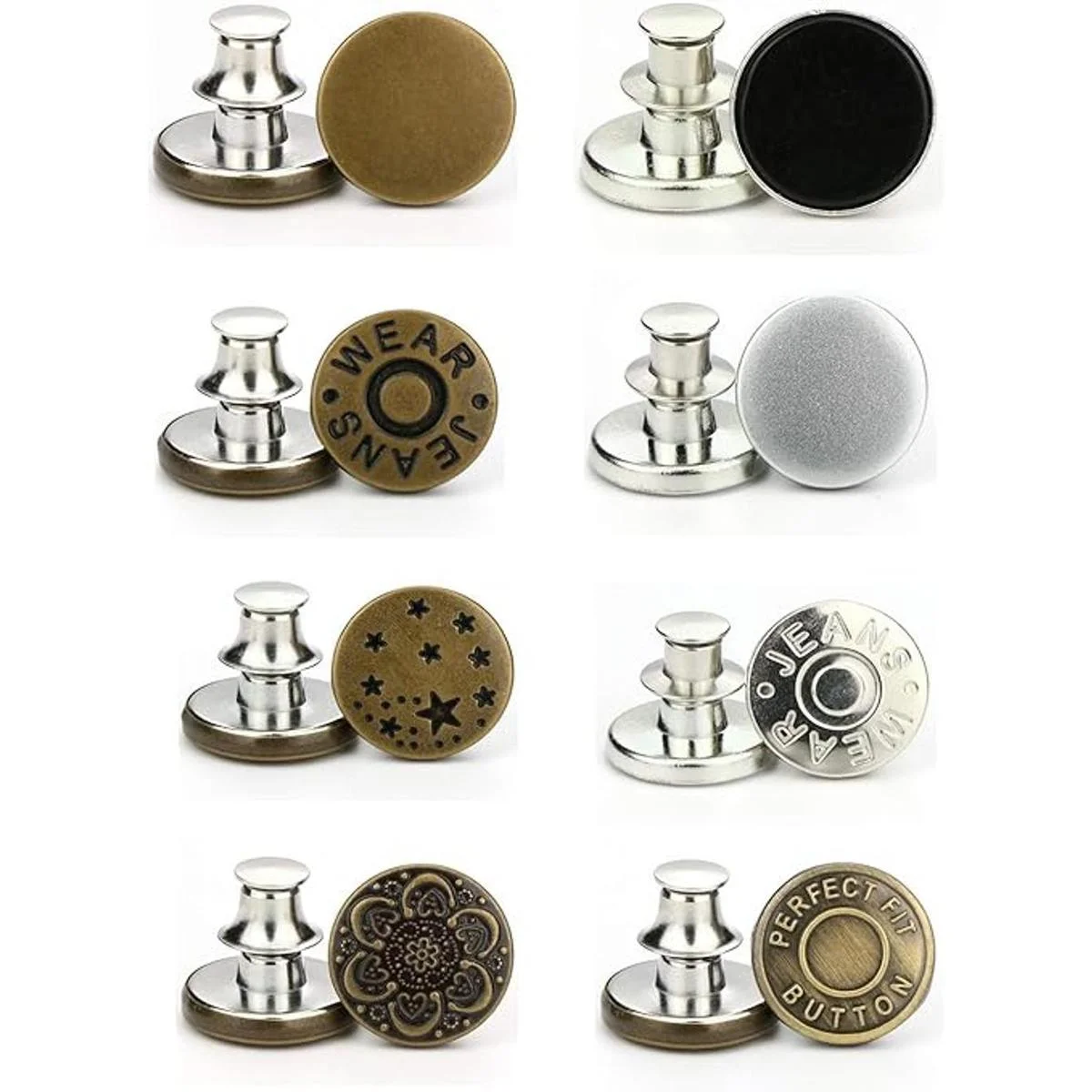 EUli Botones instantáneos de repuesto, botón extraíble, 8 unidades, sin coser para pantalones de mezclilla, manualidades, ropa de bricolaje (Talla: 0.669 in)