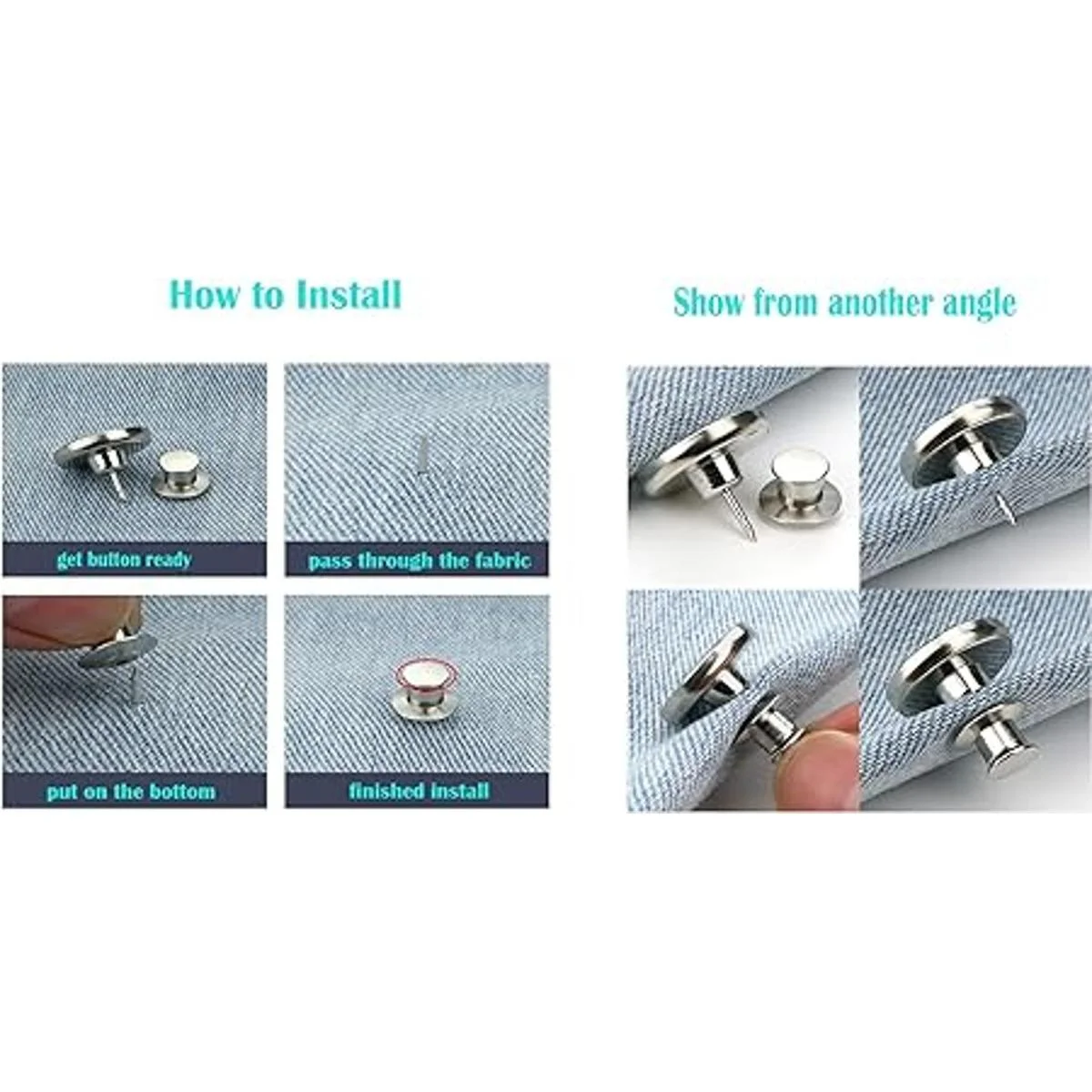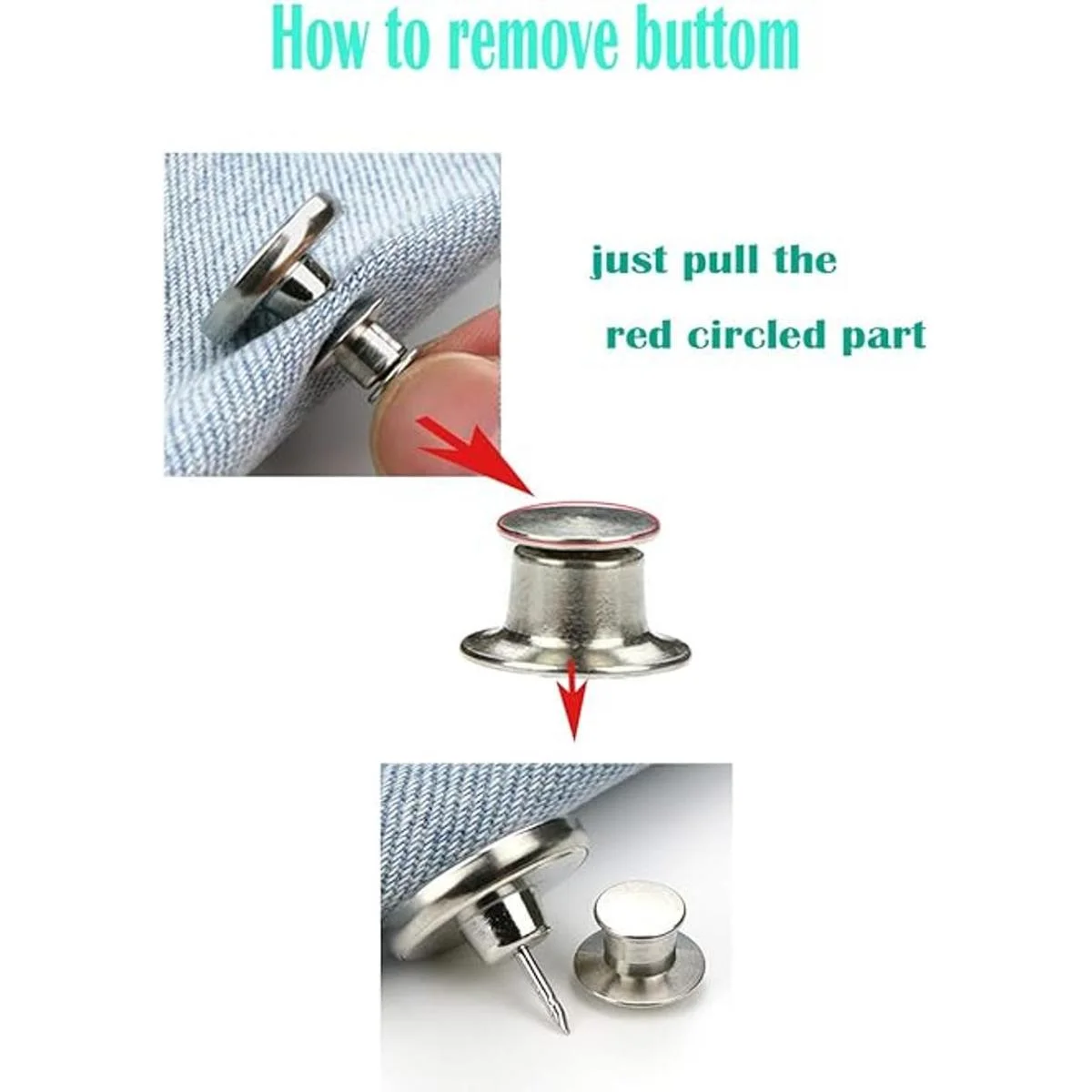 Botones de mezclilla que hacen la vida más fácil: botón de metal de fácil clip. No se requiere costura para fijar a tu prenda. Simplemente instala y retira solo en pocos minutos. En general, es un producto muy funcional, por lo que cualquiera puede usarlo.