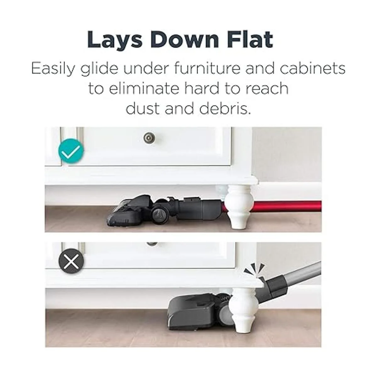 Llega hasta debajo de los muebles: hemos movido el depósito de polvo a la parte delantera para que puedas extender la aspiradora completamente y llegar con facilidad debajo de las camas y los muebles