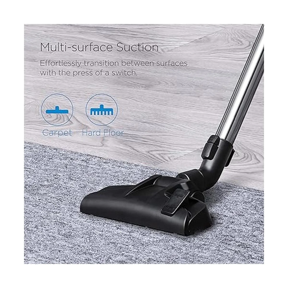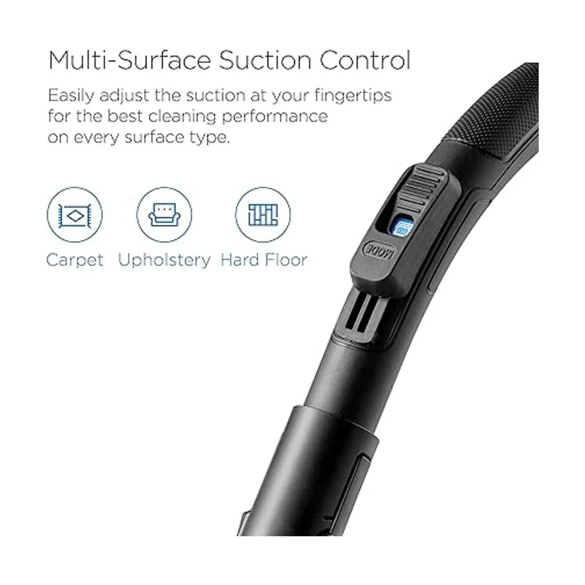 Innovadora aspiradora multisuperficie: limpieza profunda con la aspiradora de remolino. Esta aspiradora cuenta con un control de flujo de aire integrado en el mango que se puede cambiar fácilmente al alcance de tu mano. Incluye tres ajustes: alfombra, tapicería y suelos duros.