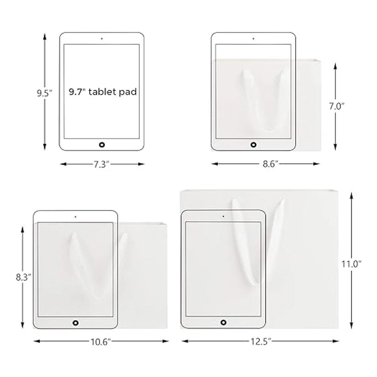 3 Sizes Paper Bags 3 different sizes for multiple needs: A: 8.6 x 3.9 x 7.0 22x10x18 cm, B: 10.6 x 3.1 x 8.2 27x8x21 cm, C: 12.5 x 4.5 x 11.0 32×11.5×28 cm. Each size comes with 10 pcs. Please confirm the bags sizes to match what you required before purchasing.
