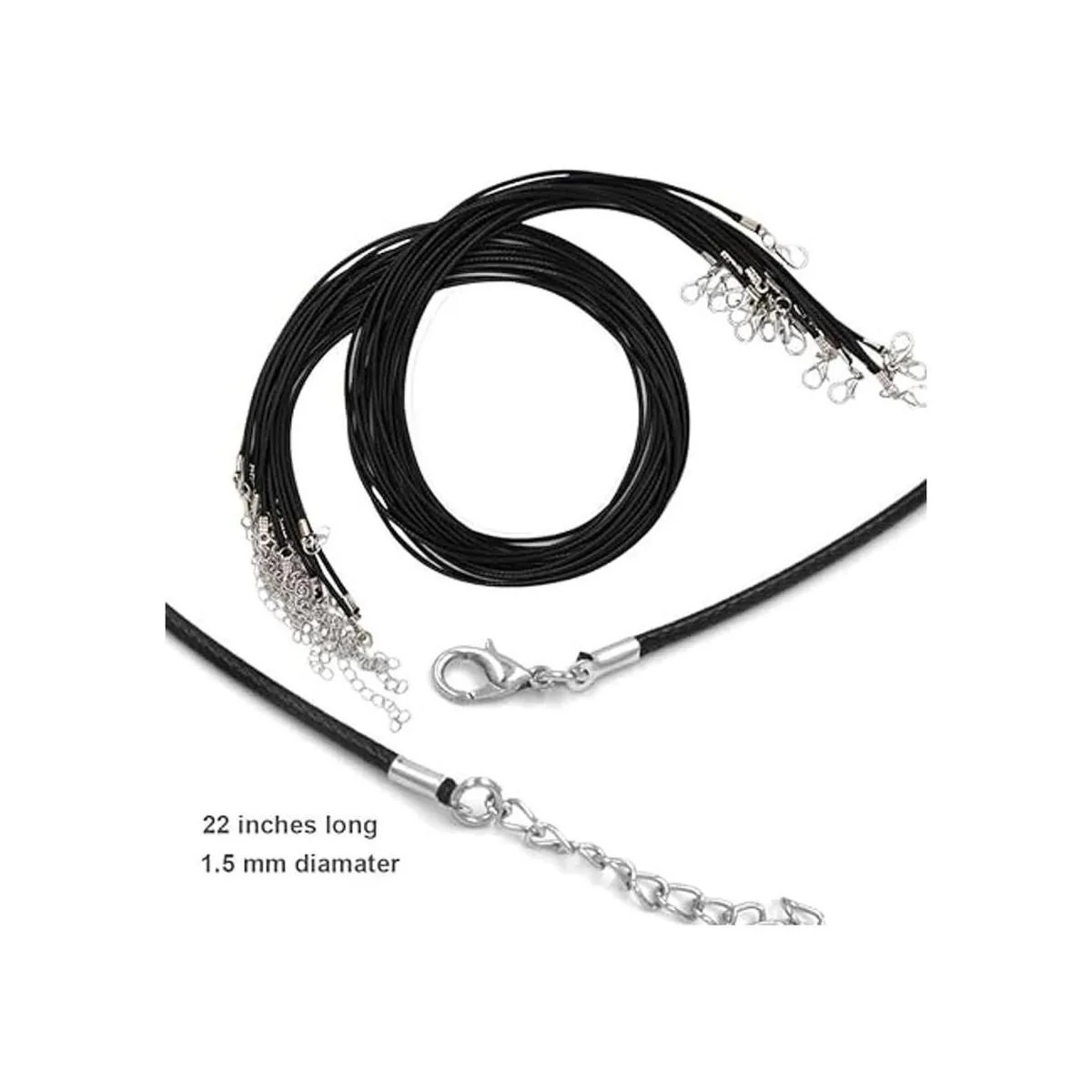 Materiales de alta calidad de cordones de piel sintética que cordón de algodón encerado para suministros de fabricación de joyas. Es ligero, flexible y duradero de usar y los extremos del cordón están hechos de metal de aleación ambiental para que coincida con tus colgantes y joyas.
