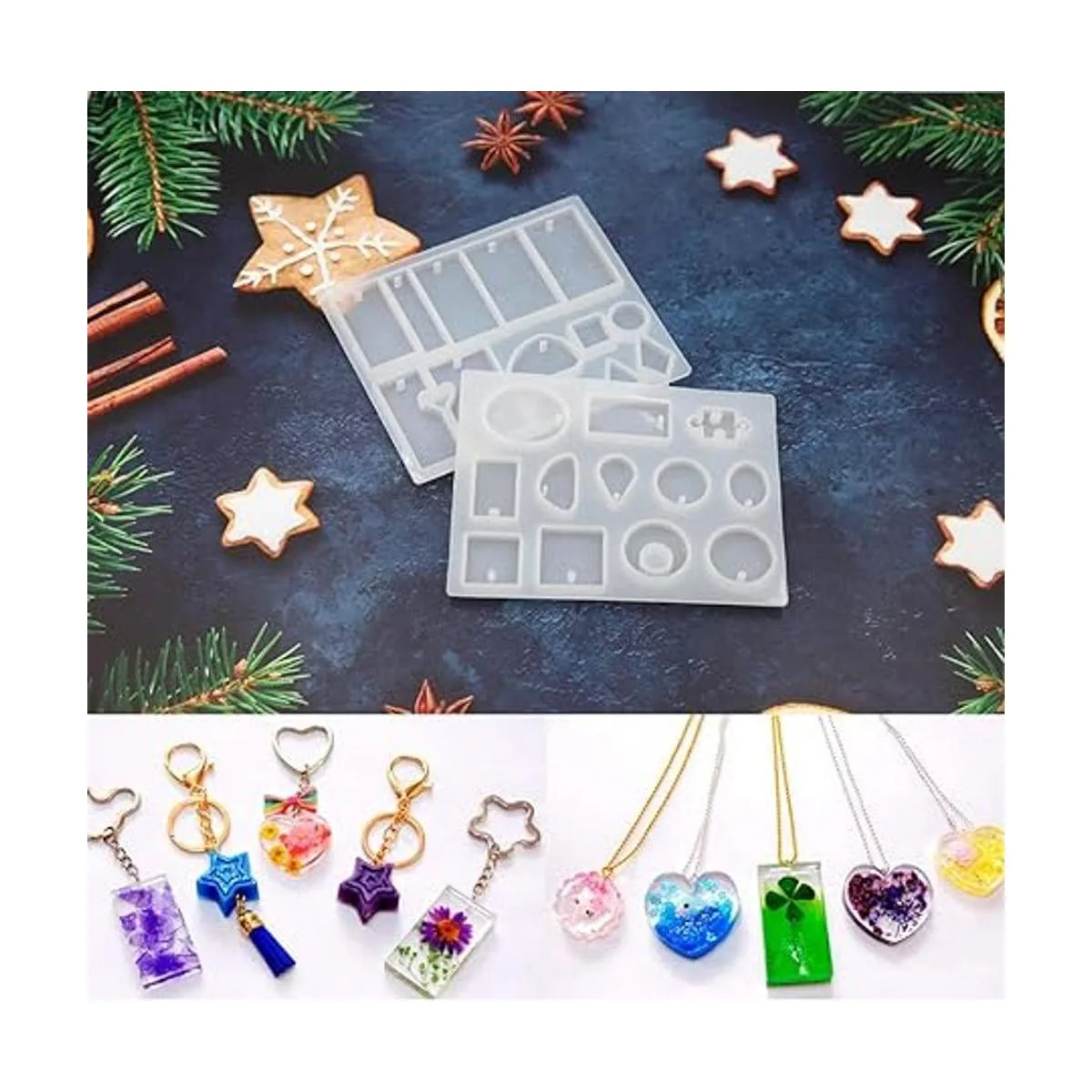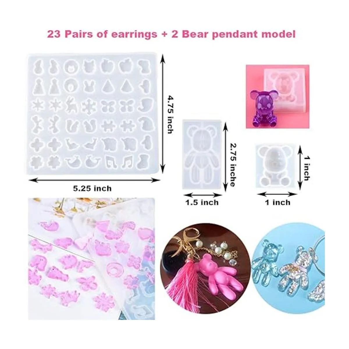 El molde de joyería incluye 3 moldes de resina con colgante de joyería, 1 colección de moldes de resina para aretes, 1 molde de resina para pulsera, 1 molde de resina de diamante, 5 moldes de resina colgantes de diferentes formas y 2 moldes de resina con colgante de oso. Hay más de 120 diseños diferentes de moldes de resina que incluyen forma de estrella, forma redonda, forma de corazón, forma cúbica, forma de pulsera y forma de oso, diferentes formas de animales, etc. Te permite hacer tus joyas en diferentes formas fácilmente.