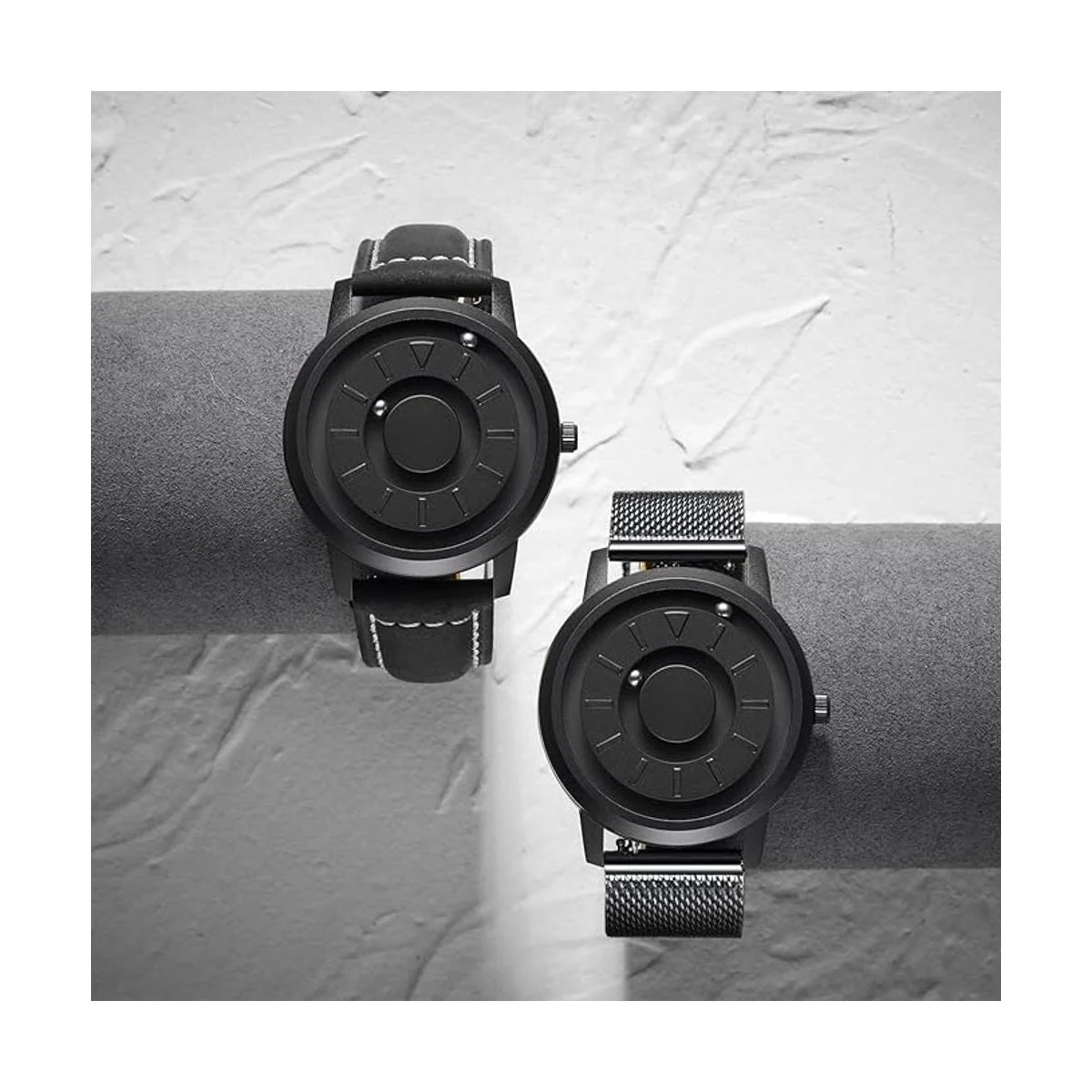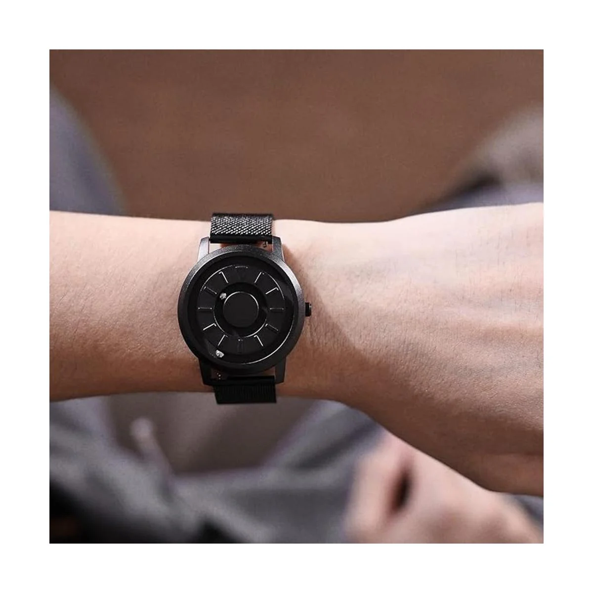 No convencional y original Dos rodamientos de bolas magnéticos viajan alrededor de la esfera del reloj en pistas separadas y empotradas. Debido a la estructura interna única de los relojes magnéticos, los punteros están diseñados en un puntero de minutos interior y un puntero de hora exterior para lograr un rendimiento estable y una mayor durabilidad. Muchos clientes dicen que se han adaptado después de usar el reloj durante un tiempo.