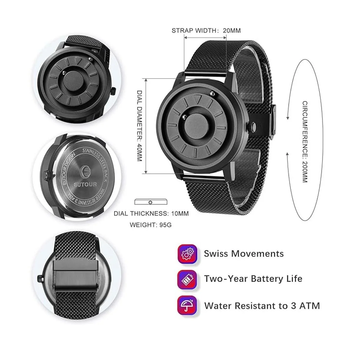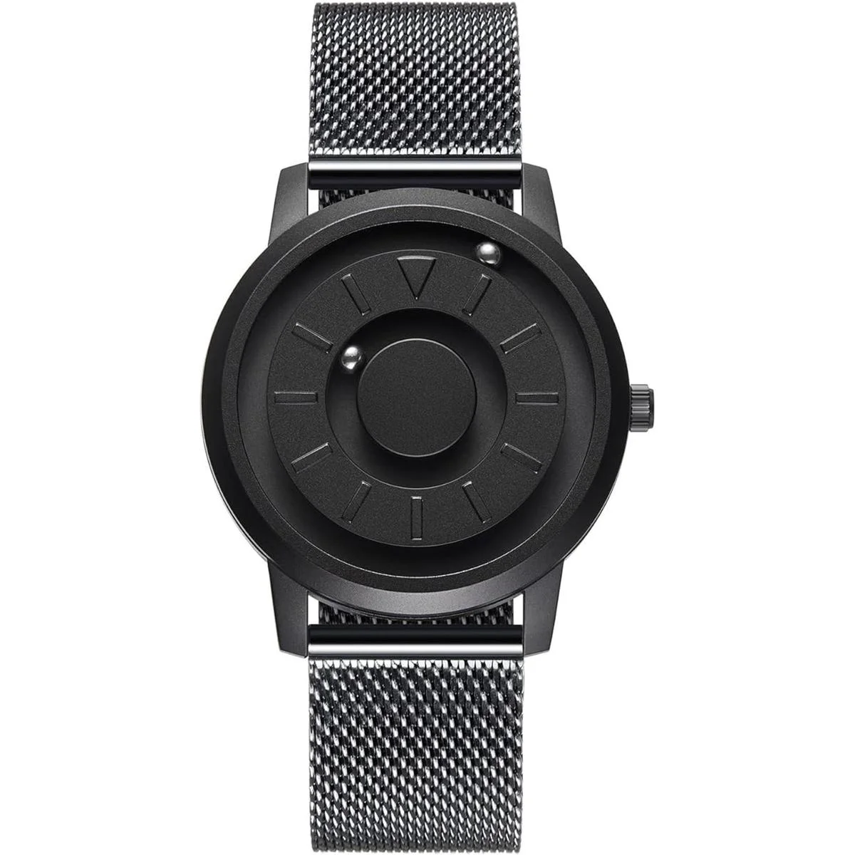 EUTOUR Relojes de pulsera de acero inoxidable para hombre, reloj magnético de negocios, casual, de moda, correa de malla de acero inoxidable, correa de cuero, color negro, 1.575 in