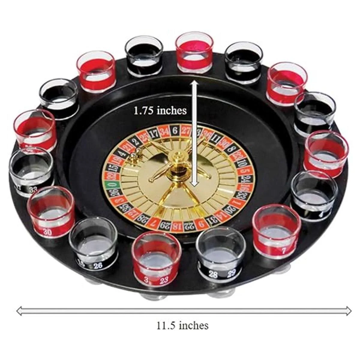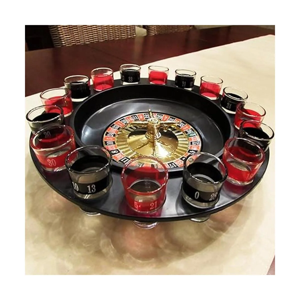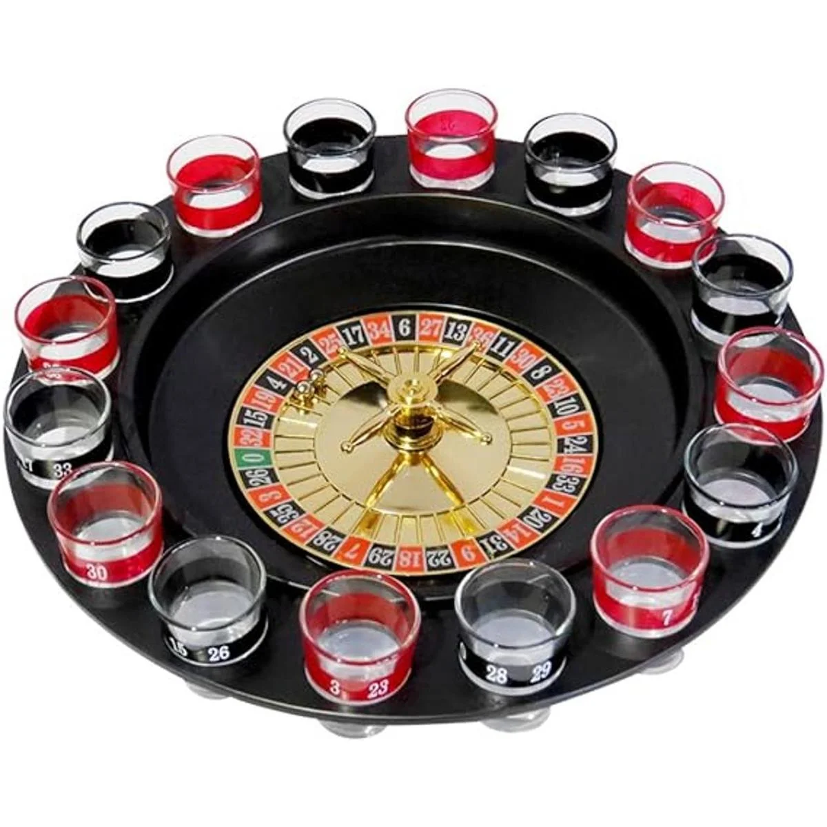 Evelots juego de beber Ruleta de vidrio w2 Bolas y 16 vasos de chupito, estilo casino