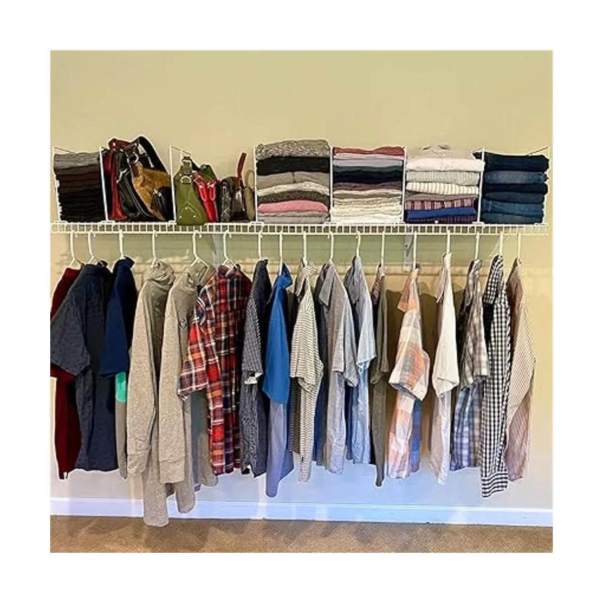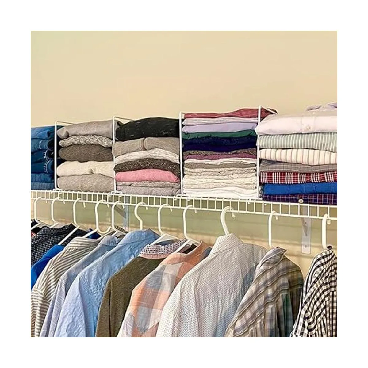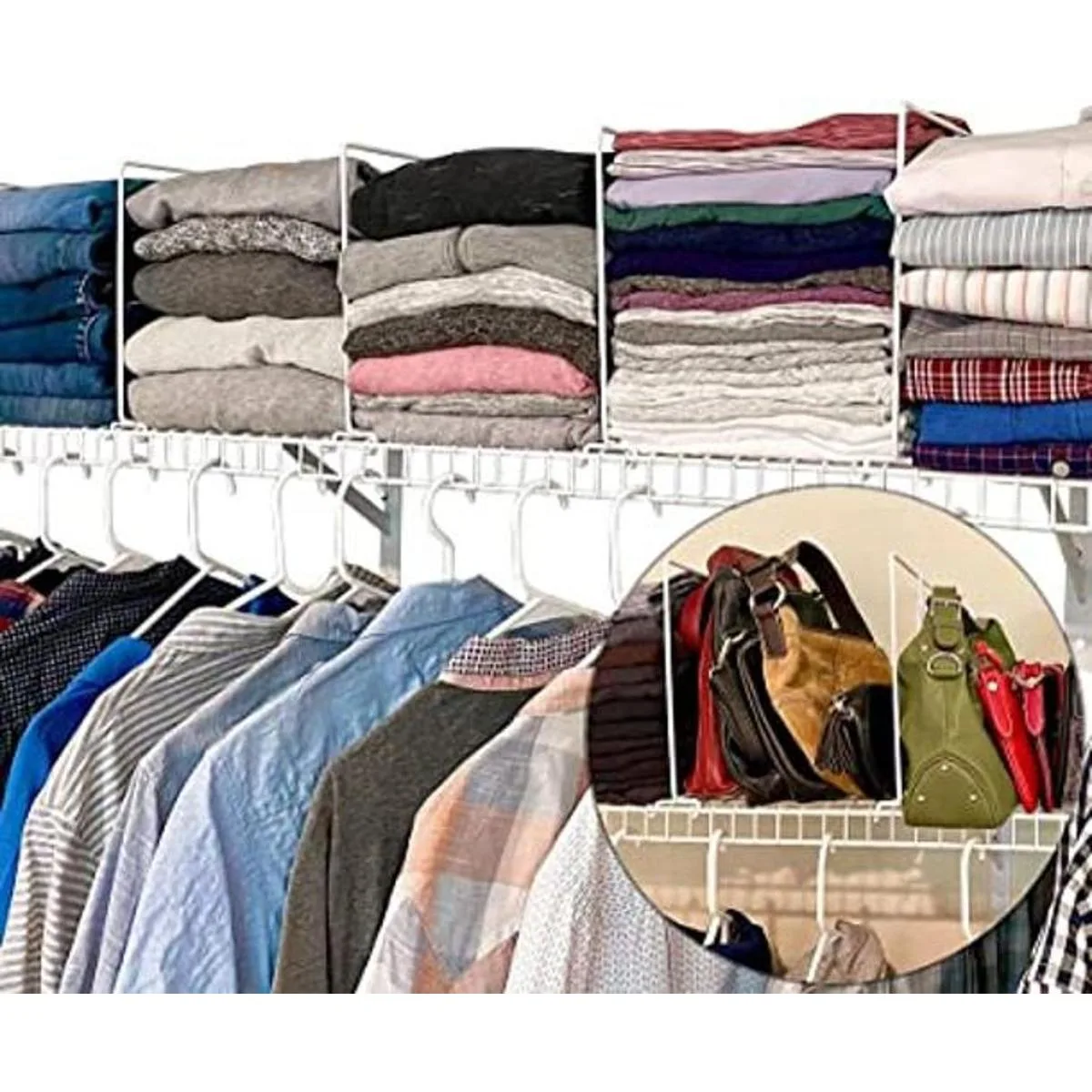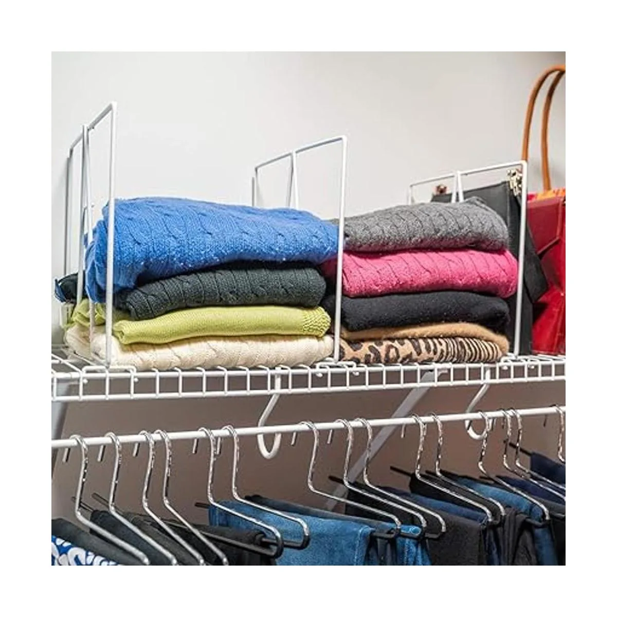Este juego de separadores de estantes de alambre te ayudará a deshacerte del desorden y mantener tus armarios organizados y limpios.