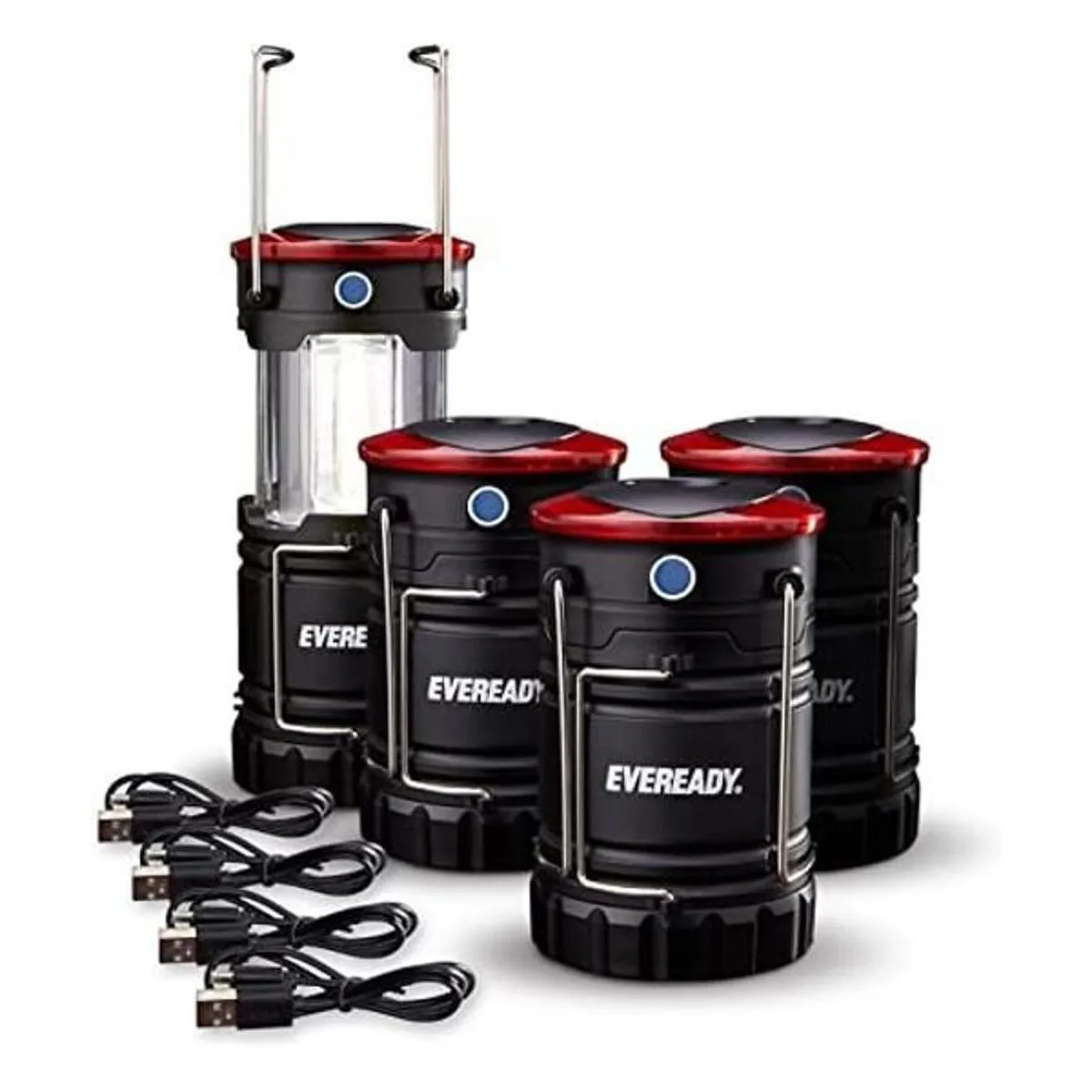 Eveready Faroles LED de camping paquete de 4, linterna plegable híbrida recargable, luces ultrabrillantes para exteriores, camping, pesca, emergencia negra, talla única