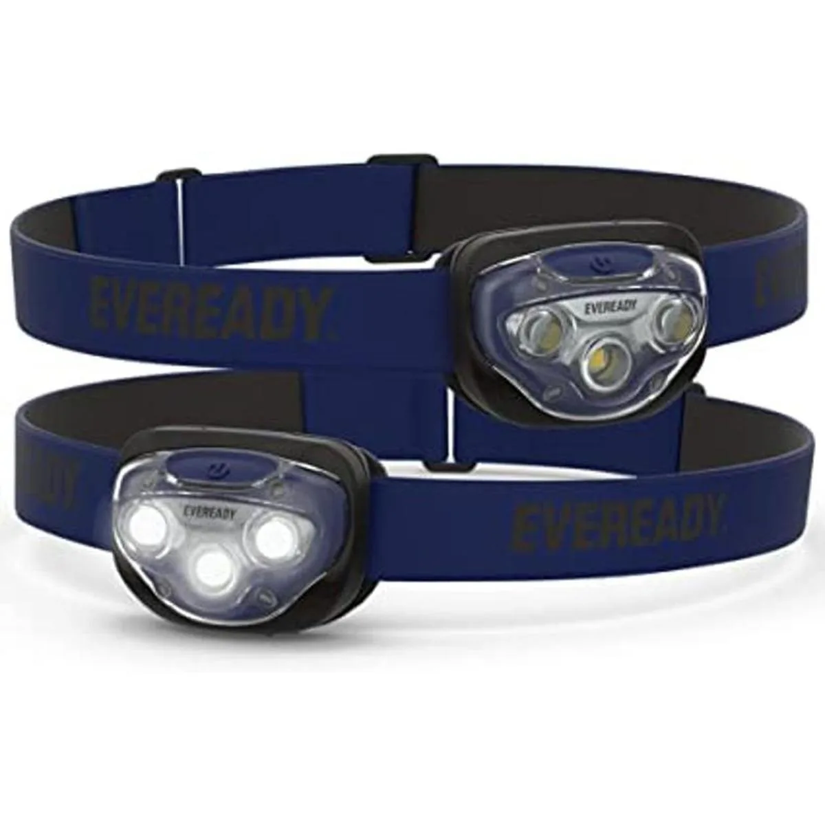 Eveready Faros delanteros LED paquete de 2, luces principales brillantes y duraderas para correr, campamento, pesca, emergencia pilas incluidas, azul marino paquete de 2, ajustable