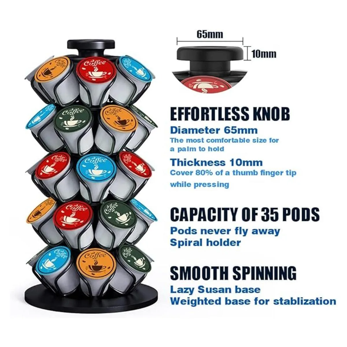 Capacidad de 35 cápsulas: el carrusel es compatible con K Cups o cualquier otra cápsula de café de marca de terceros que sea compatible con cafeteras Keurig.