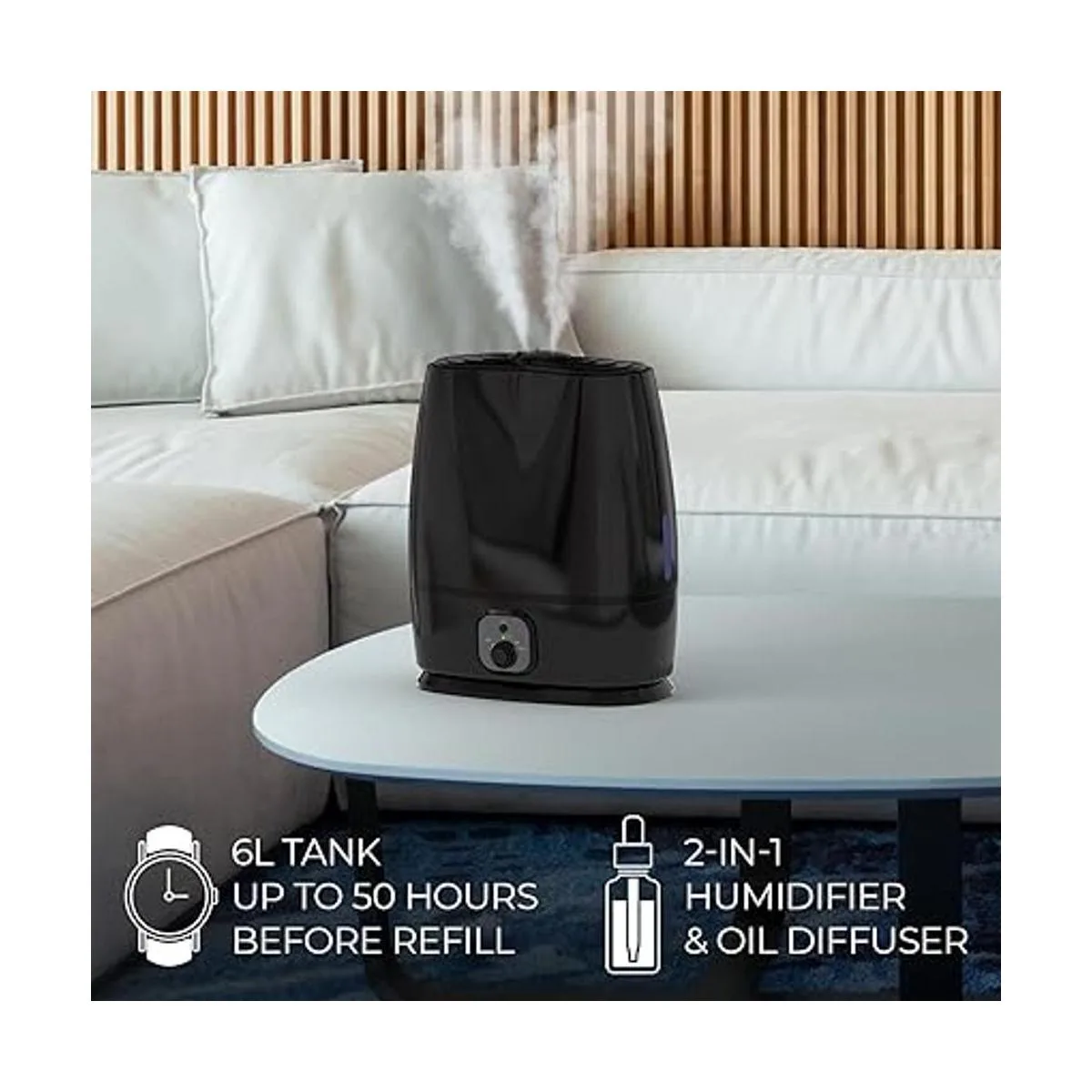 Everlasting Comfort Humidificador ultrasónico de niebla fría (1.5 galones) Bandeja de aceites esenciales, alto rendimiento, ultrasilencioso, apagado automático, luz nocturna, vaporizador de gran capacidad, 6L