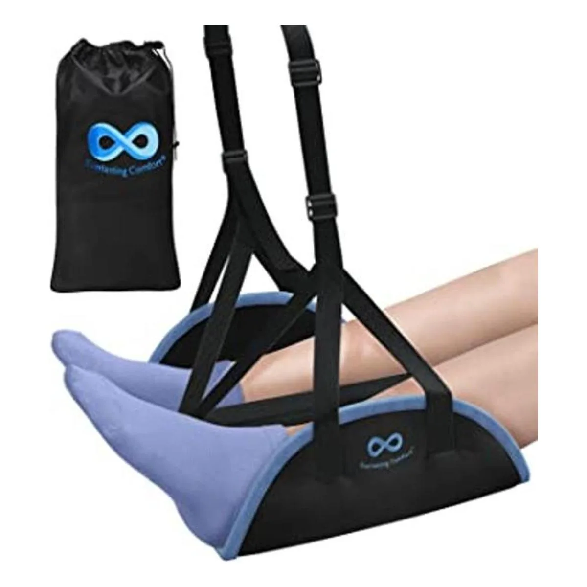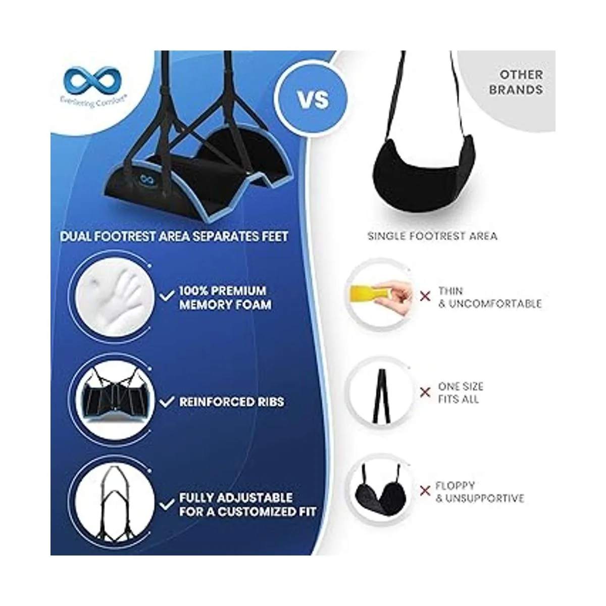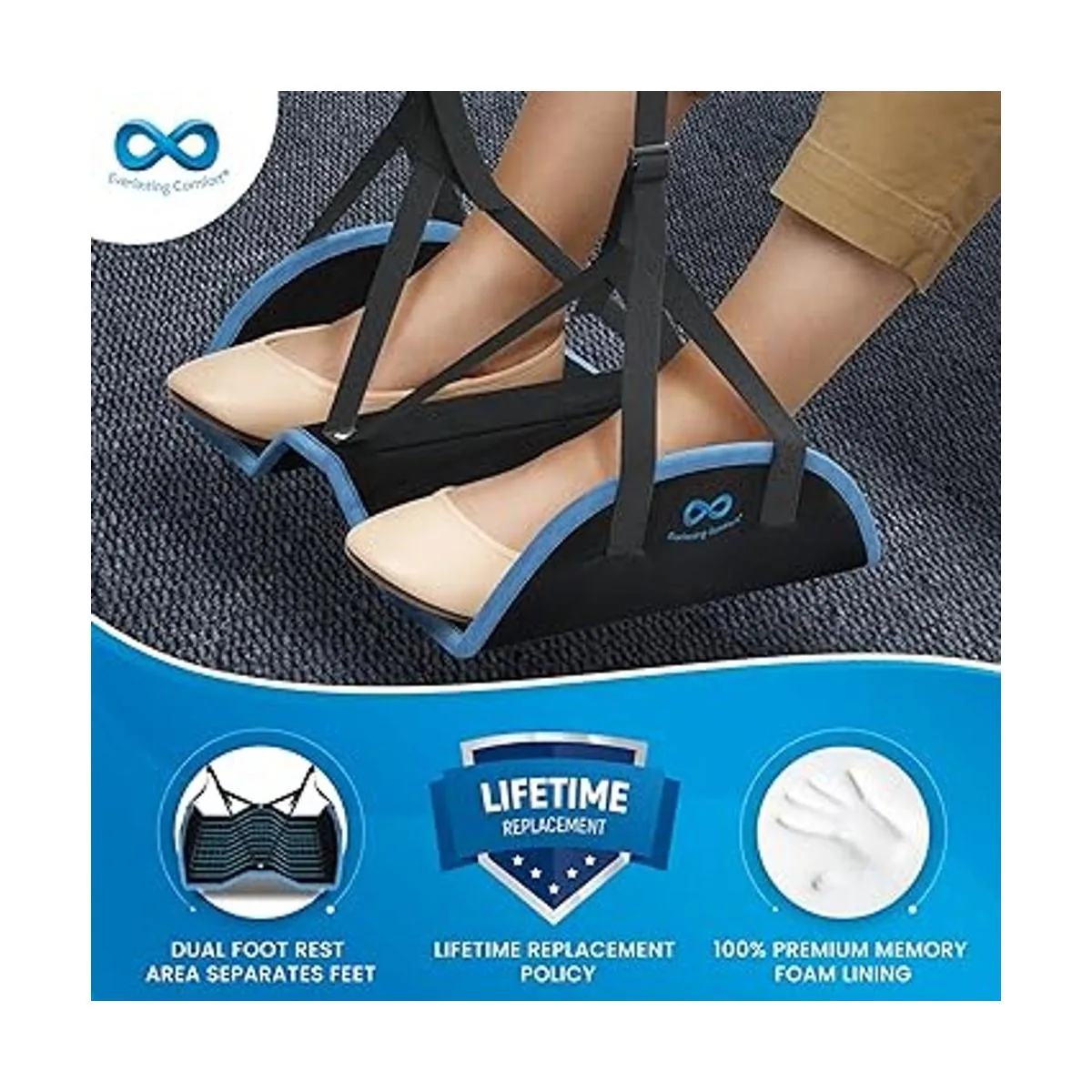 Everlasting Comfort Reposapiés ergonómico para avión, hamaca de pies, reposapiés de viaje ajustable espuma viscoelástica premium