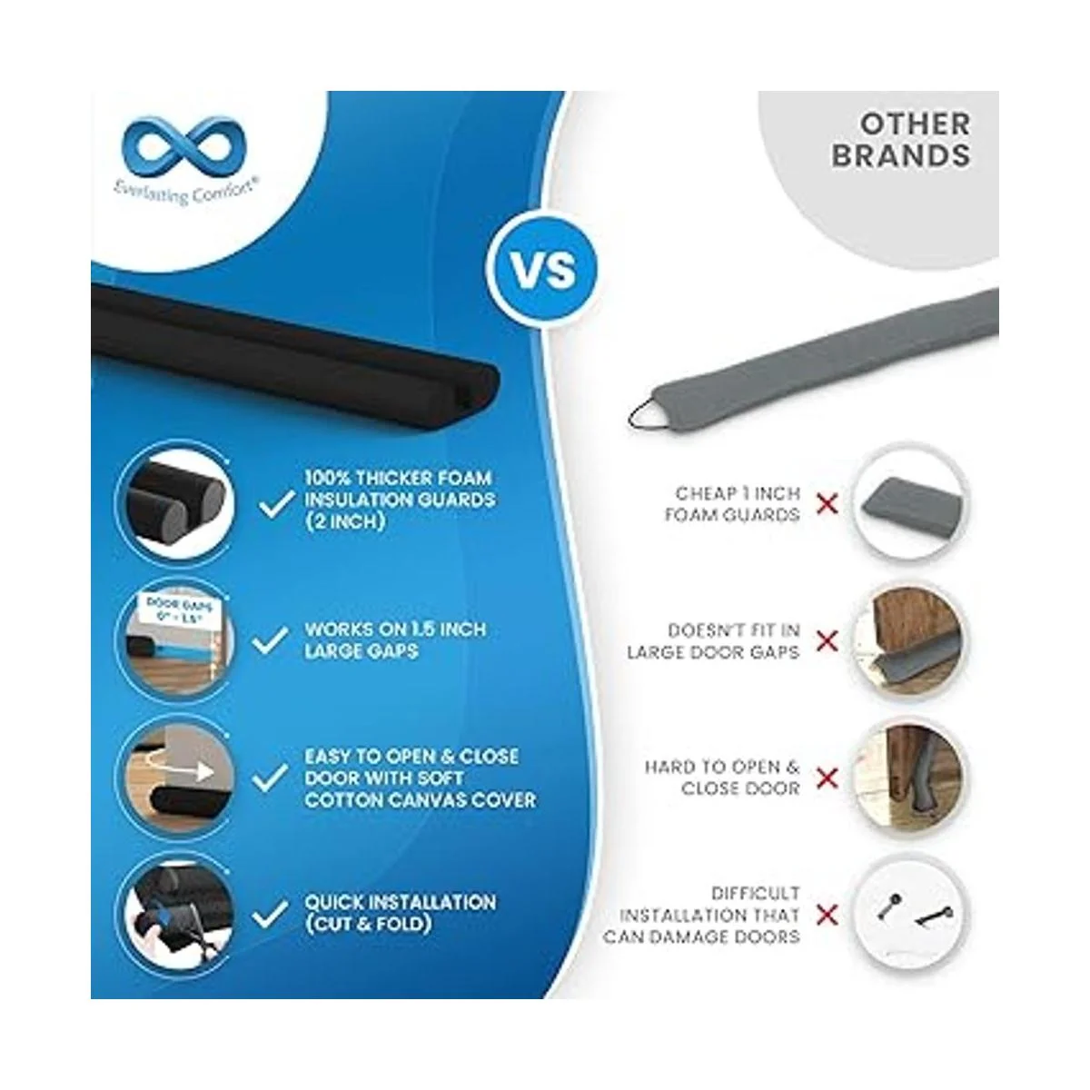 Everlasting Comfort Tapón de corriente para debajo de la puerta, tira de espuma más gruesa de 2 pulgadas bloquea un 50 más de ruido y viento, sella la parte inferior de las puertas de 30 a 36 pulgadas, barrido interior de la puerta delantera, bloqueador, protector de insonorización