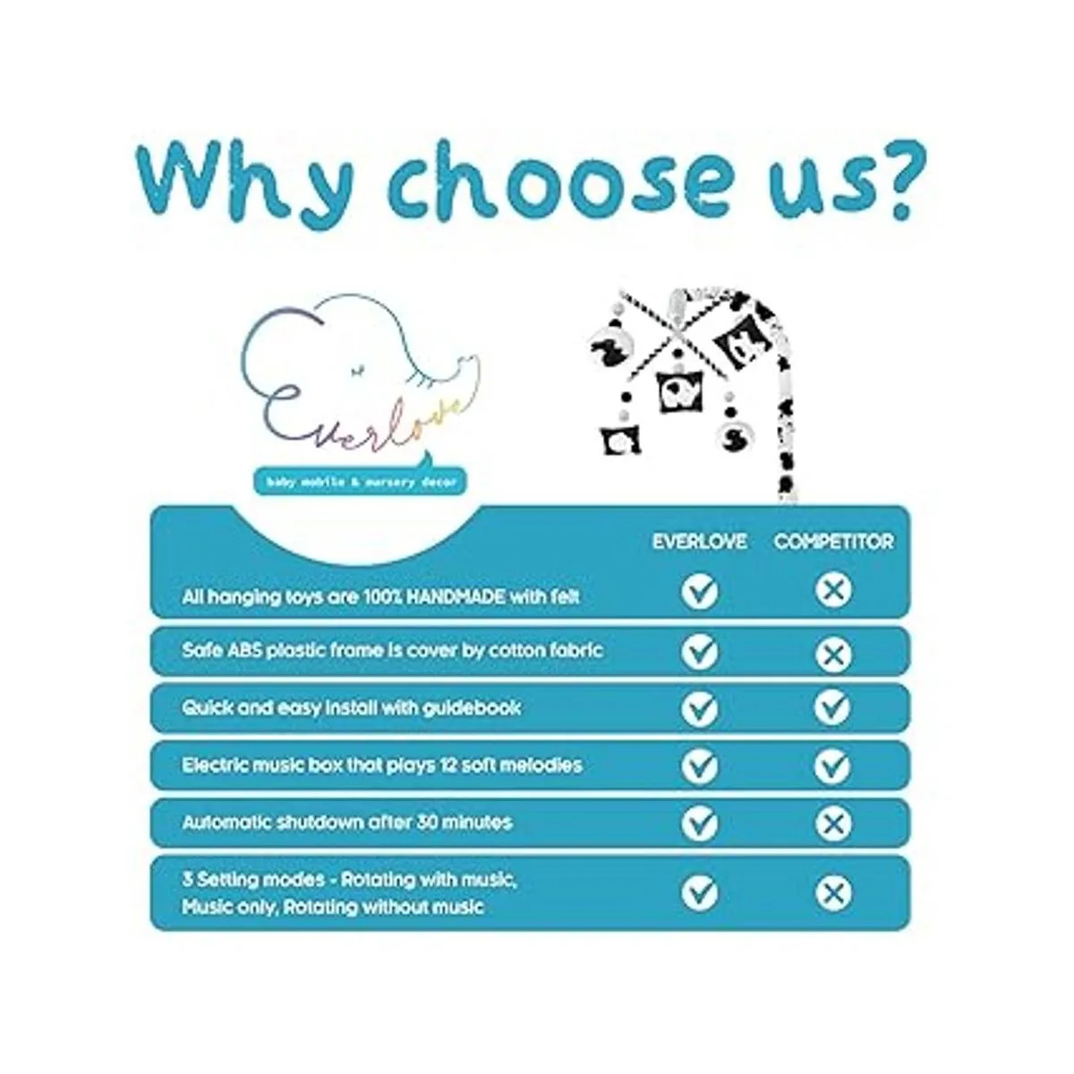 Hecho para la vista del bebé: con este móvil Montessori, el bebé nunca mirará ningún fondo de animal del móvil de elefante o móvil del bosque. Nuestro móvil para guardería está hecho para la vista del bebé y para ser bonito en la guardería.
