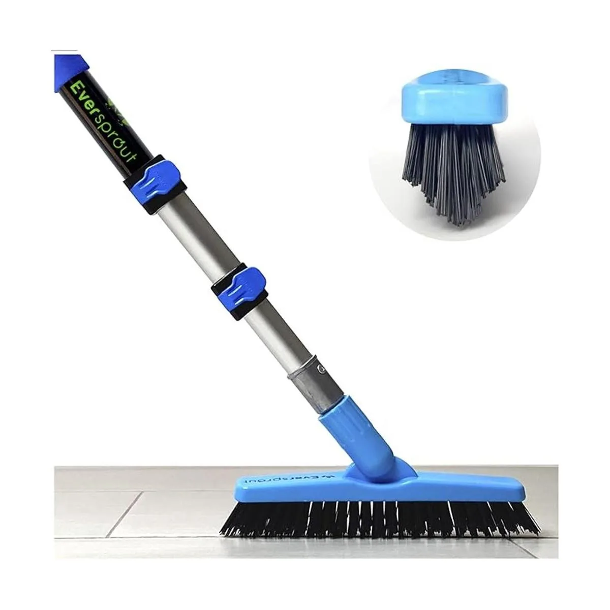 EVERSPROUT Cepillo de lechada de 1.5 a 3 pies Pro con poste de mango largo Cerdas rígidas en forma de V construidas para esquinas y suciedad resistente, diseño giratorio que limpia azulejos de ducha, cocina, baño, hormigón al aire libre