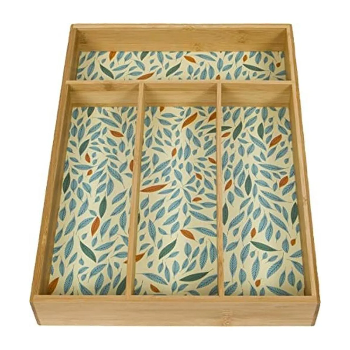 Evriholder DUOG6AMZ Organizador de utensilios de cocina, divisor, 4 compartimentos con forro decorativo de plumas, hecho de bambú 100 de origen sostenible, verde
