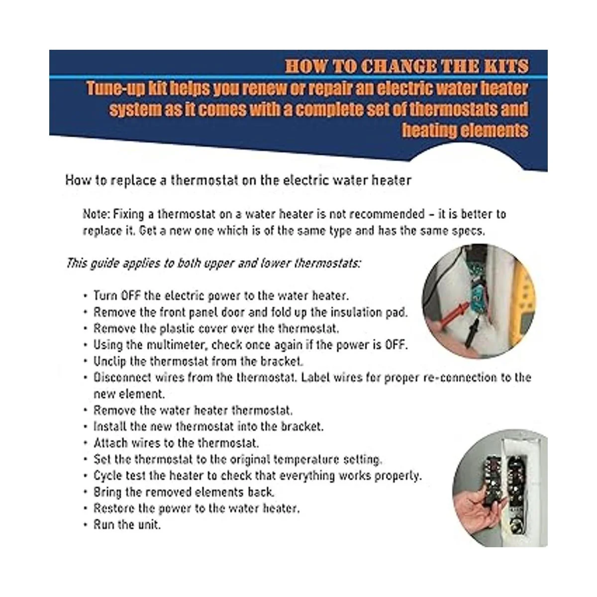 Los termostatos eléctricos del calentador de agua kit de afinación/kit de reparación/paquete de fontanero, se adaptan a la mayoría de los modelos de calentadores de agua: hidromasaje, blanco BRADFORD; CRAFTMASTER; GENERAL ELECTRIC; GS WOOD; KENMORE; LOCHINVAR; A O SMITH; RELIANCE; RHEEM; RICHMOND; RUUD; RUUD; RUUD; ; ESTADO; M.; ORFLO; APCOM