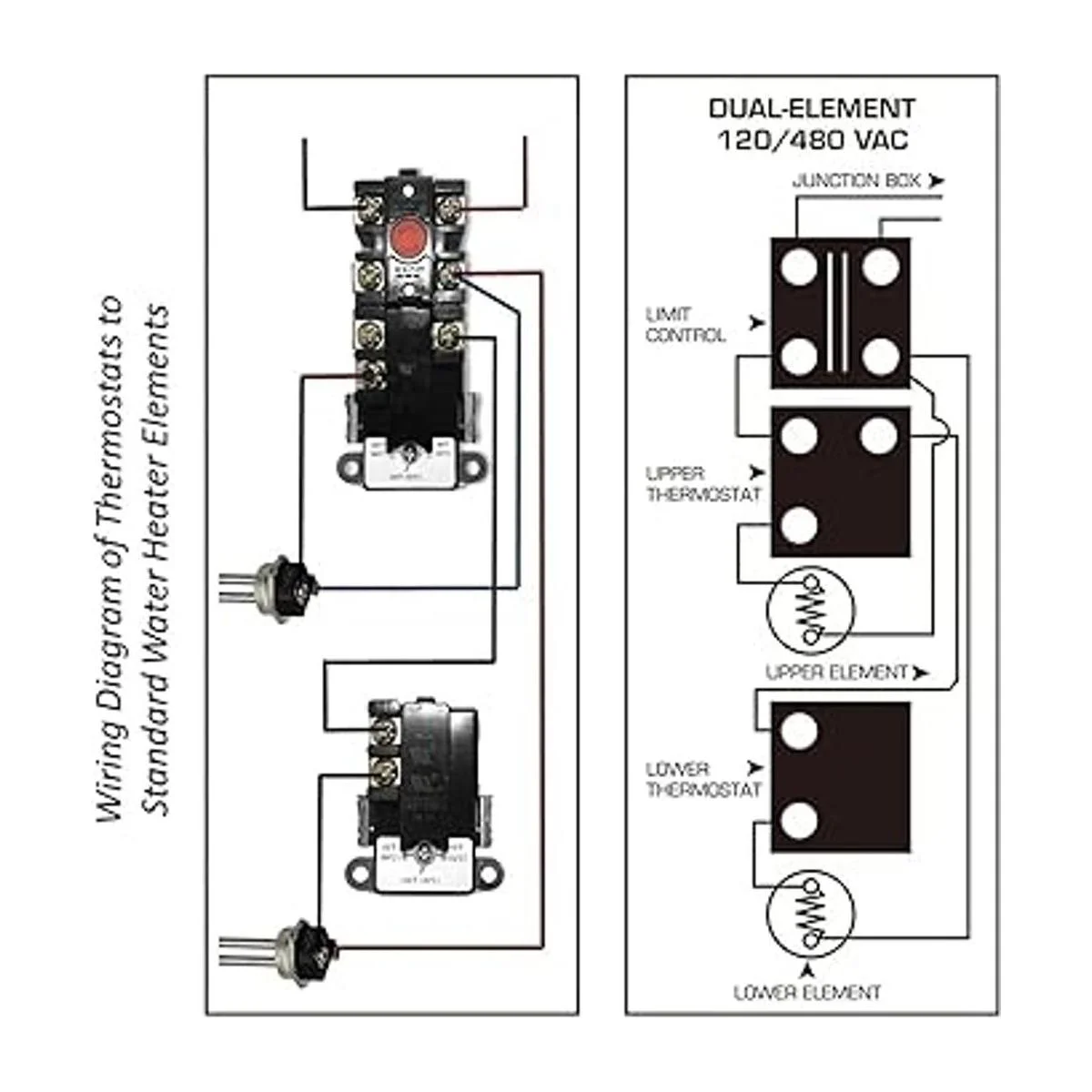 EWH00 Termostato eléctrico para calentador de doble elemento, incluye 1 termostato superior y 1 termostato inferior, tipo universal para TOD y APCOM, apto para la mayoría de calentadores de agua eléctricos
