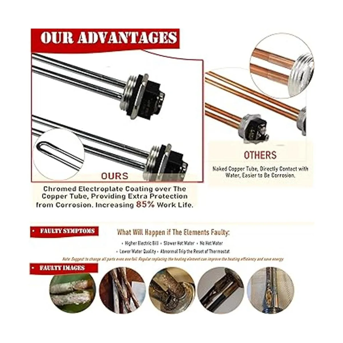 EWH03 Kit de ajuste de calentador de agua eléctrico con llave de elemento, incluye termostato de calentador superior e inferior, 2 elementos de calentador, 4500 W 240 V 3500 W a 208 V, 1 llave de elemento, piezas de repuesto para calentador de agua